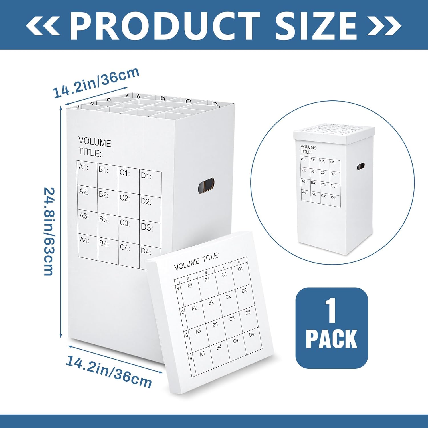 - 16 Slots : you will get 1 cardboard file boxes with lids, measuring about 14.2 x 14.2 x 25 inches, each box is designed 4 x 4 with 16 slots , each slot is approx. 3.54 x 3.54 inches, and can store items up to 25 inches high