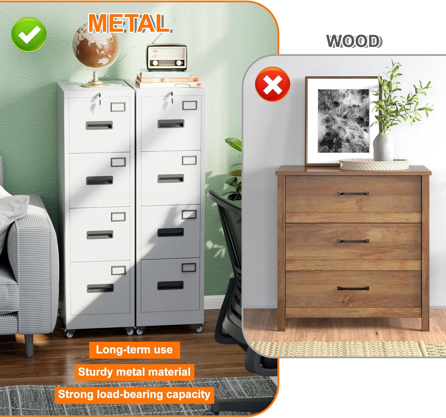 - ăStylish and PracticalăFeaturing simple stylish appearance, this 4 drawer metal files cabinet with lock fits under most desks, keep your workspace tidy and clean