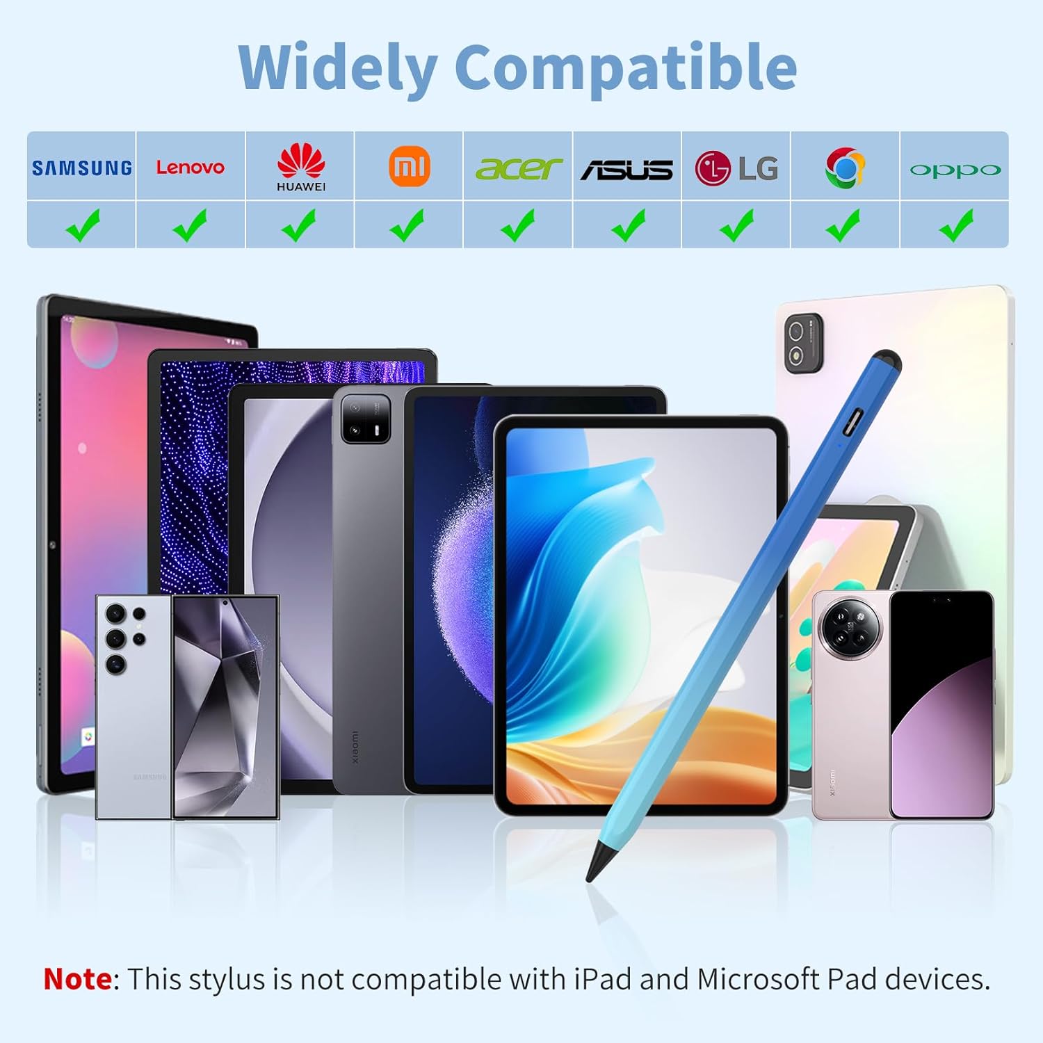 - ✅Compatibility: This stylus pen is compatible for iOS/Android touchscreens. It can not only work for Lenovo/SAMSUNG/HUAWEI/Vivo/Mi and other brand tablets, but also can work for iPhone, iOS/Android/Harmony OS, and other system cellphones. NOTE: This stylus pen not compatible for iPad & Microsoft tablets and windows systems