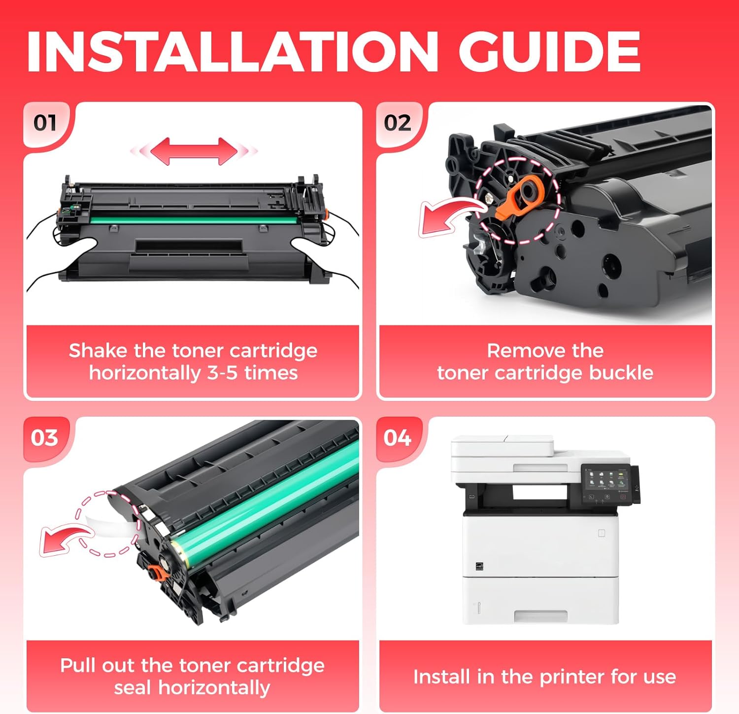 - The latest chip version: The JCTONER toner cartridges are equipped with the latest version of built-in chips, ensuring perfect compatibility between each toner cartridge and the printer. This enables you to print efficiently while maintaining stability and reliability, making installation convenient without the need for manual adjustments. All JCTONER toner cartridges have undergone strict quality testing and have obtained ISO9001 certification. High-quality toner cartridges can meet the demand for high printing volume. The fine toner ensures clear and stain-free printing results and extends the lifespan of the printer. You can purchase with confidence.
