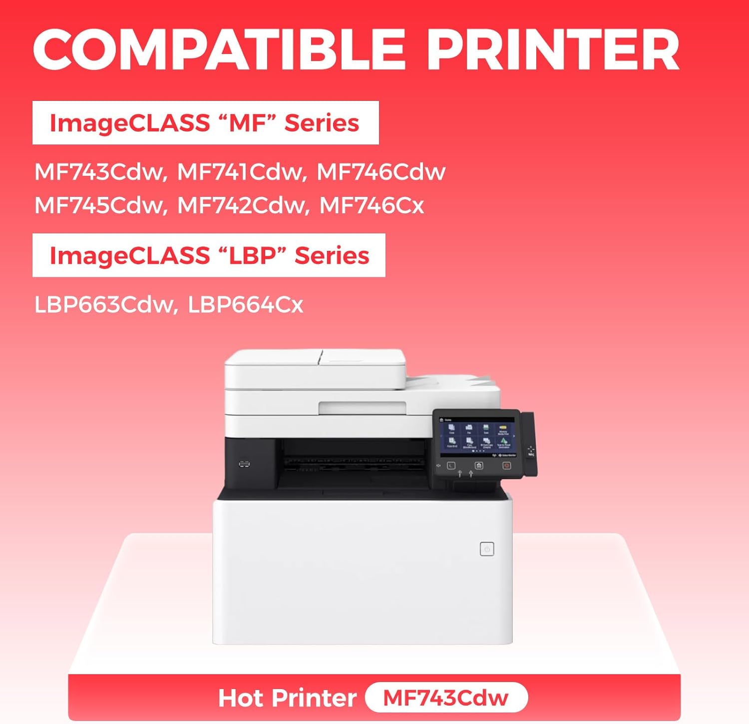 - Compatible Devices : Compatible with Canon imageCLASS LBP663Cdw LBP664Cx MF743Cdw MF741Cdw MF746Cdw MF745Cdw MF742Cdw MF746Cx laser printers. Compatible with Canon imageCLASS LBP663Cdw LBP664Cx MF743Cdw MF741Cdw MF746Cdw MF745Cdw MF742Cdw MF746Cx laser printers.