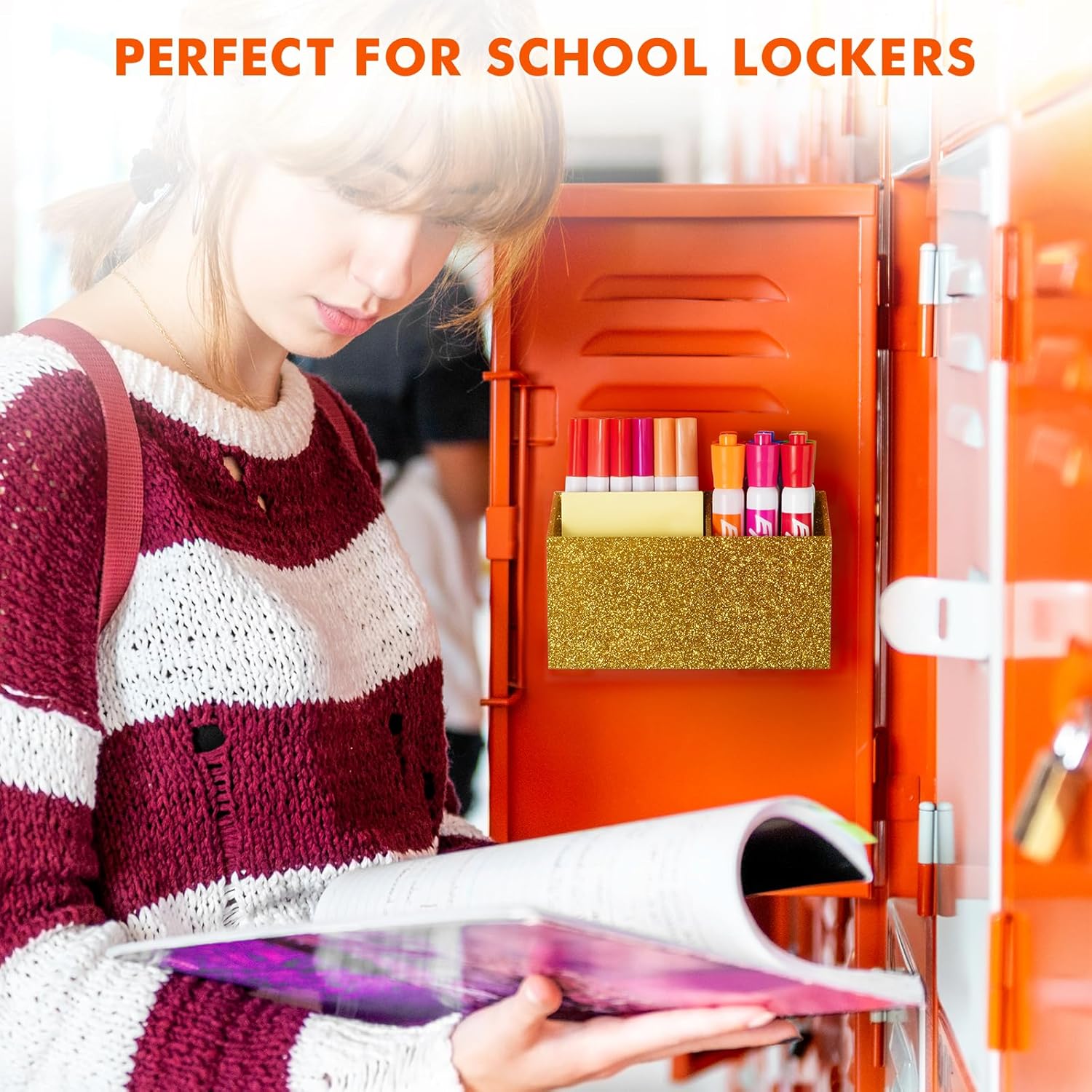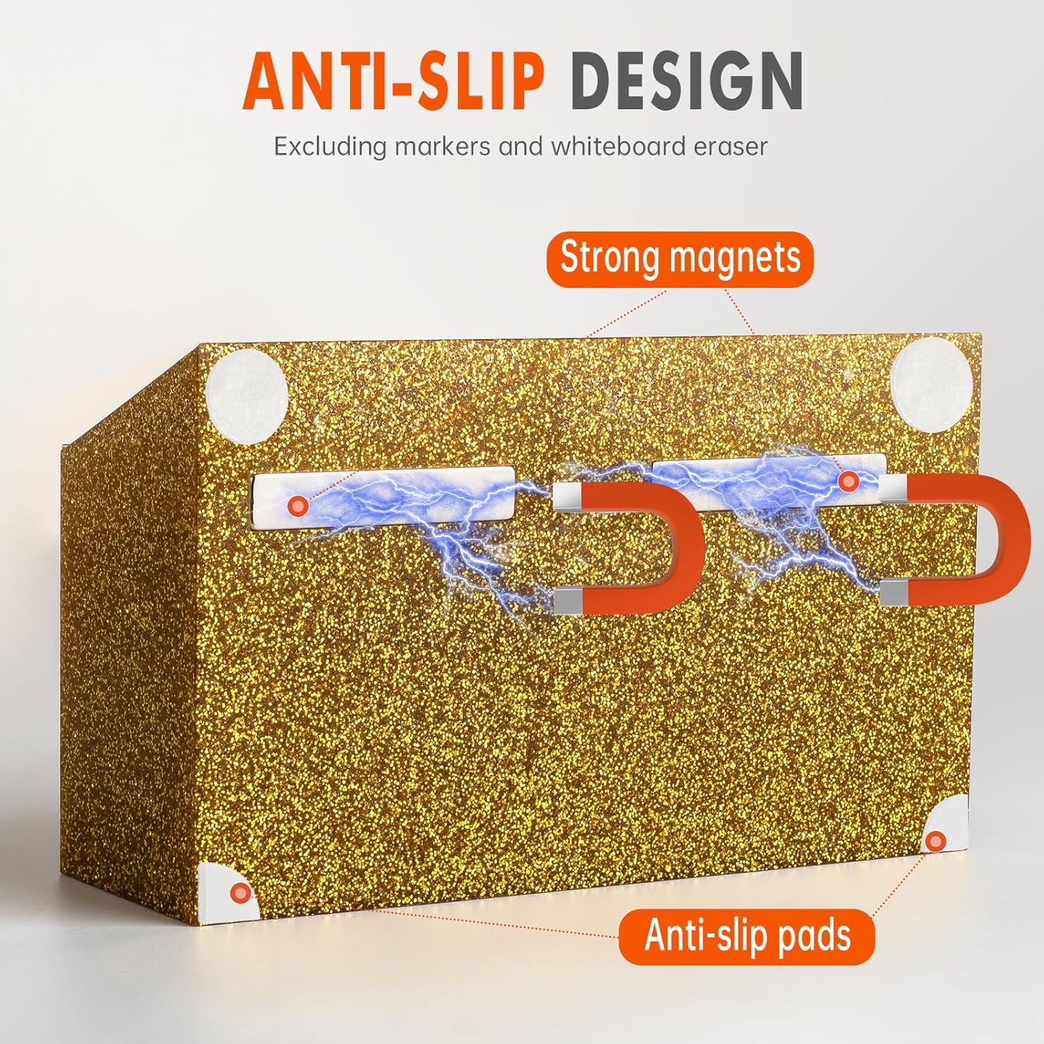 BEYGORM Magnetic Dry Erase Marker Holder for Whiteboard,Non-slip Acrylic Magnet Pen Holder for Fridge Refrigerator,Locker Organizer for Work,Locker Accessories,Pencil Cup for Desk(Gold)