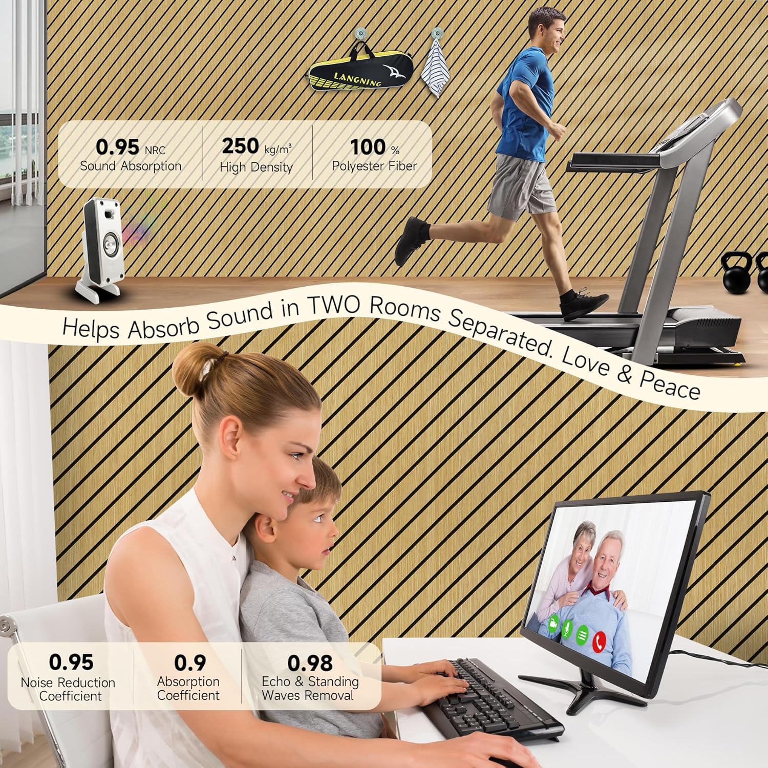 - HIGH-DENSITY ACOUSTIC PANELS: Crafted from 100% eco-friendly polyester fibers with natural wood surface. Engineered for durability, they are flame-retardant, odorless, and family-safe. The dense, uniformly stiff polyester fibers feature heat-treated surfaces to ensure lasting structural integrity and optimal sound absorption performance.
