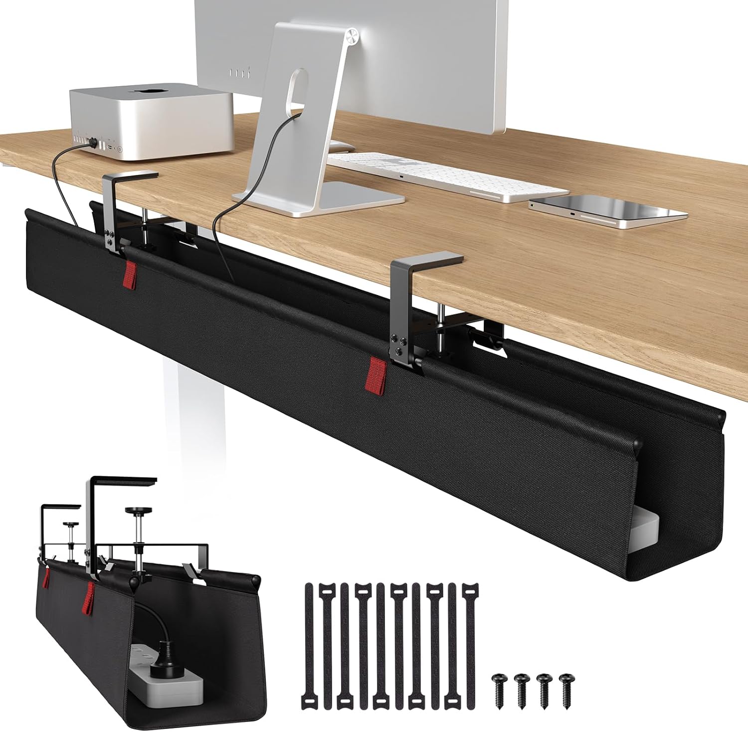- Large Capacity and Durable. The cable tray size 48"L x 5.5"W x 5.5"H, it fits all size adapters and sockets, holds and hides everything under your table. It is ideal cable management under desk.