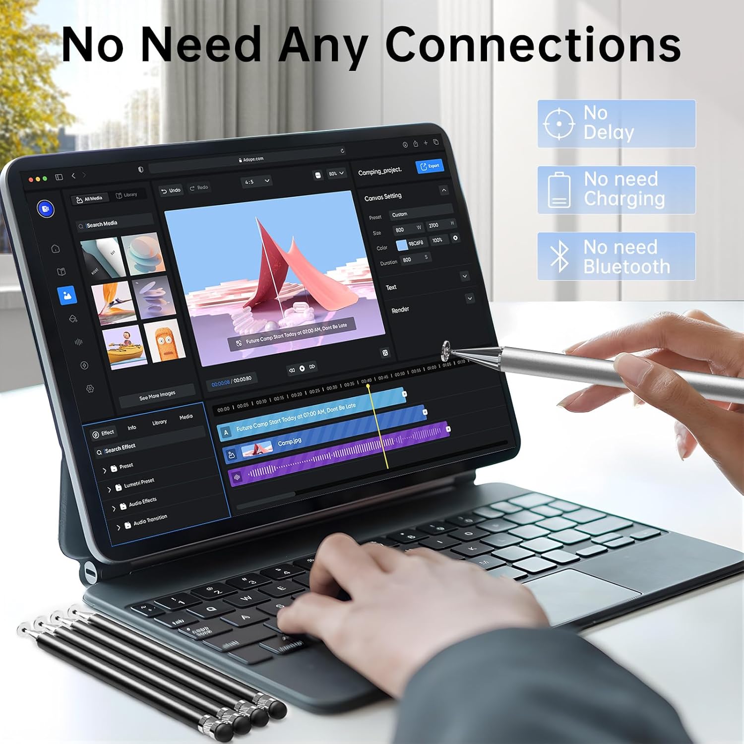 - 【2-in-1 Stylus Pen】Tablet pen for touch screen, made of lightweight alloy, no need for Bluetooth connection or charging, ready to use after opening the package, comfortable in hand, sturdy, durable and anti-aging, so you can use it anytime, anywhere Easily capture inspiration and make everything feel like writing on paper, giving you a more accurate writing/drawing/touching experience.