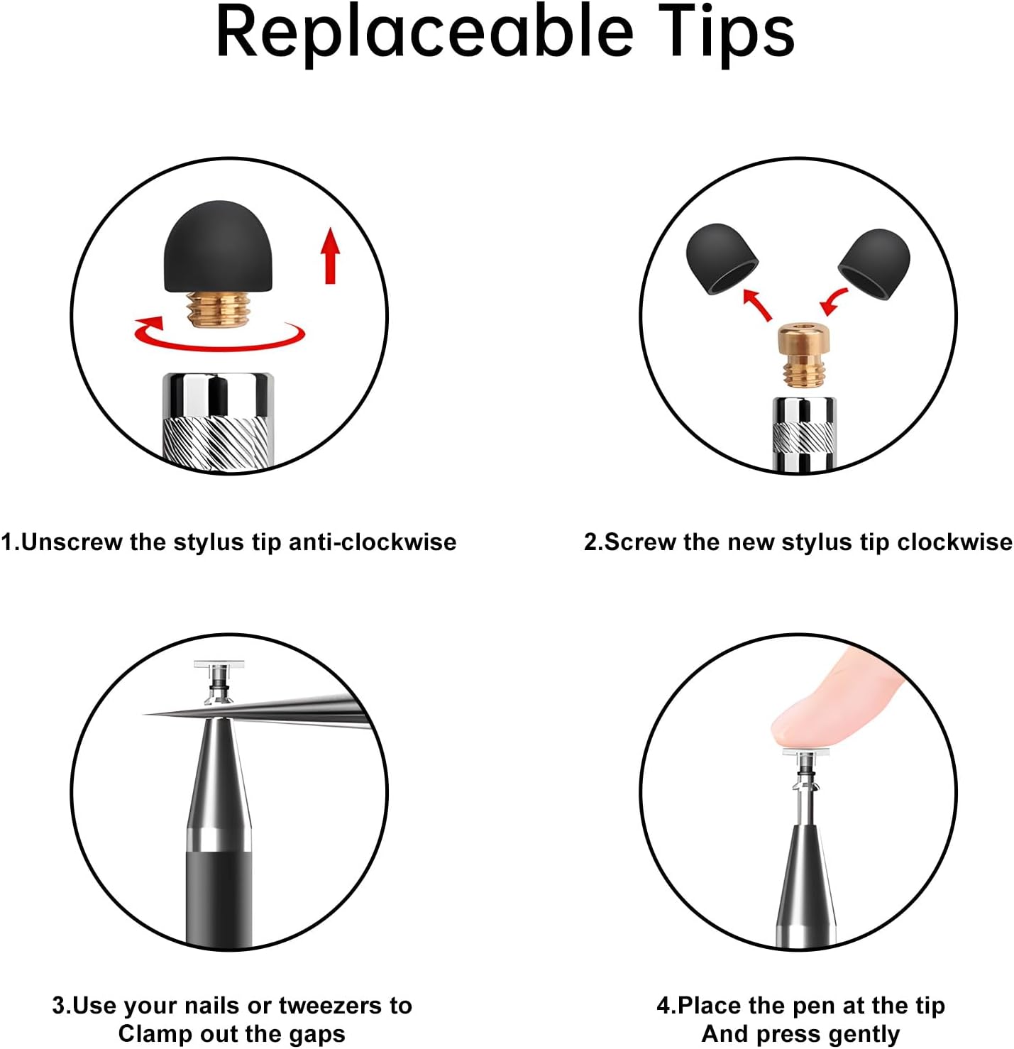 - 【High Accuracy and High Sensitivity】The stylus adopts a flexible transparent disc tip that can flexibly fit on the screen without leaving disconnected lines on your tablet or phone, providing better flexibility and accuracy, Allowing you to see exactly where the mark is and giving an accurate point, while the rubber tip and disc tip can give you two different touch experiences.
