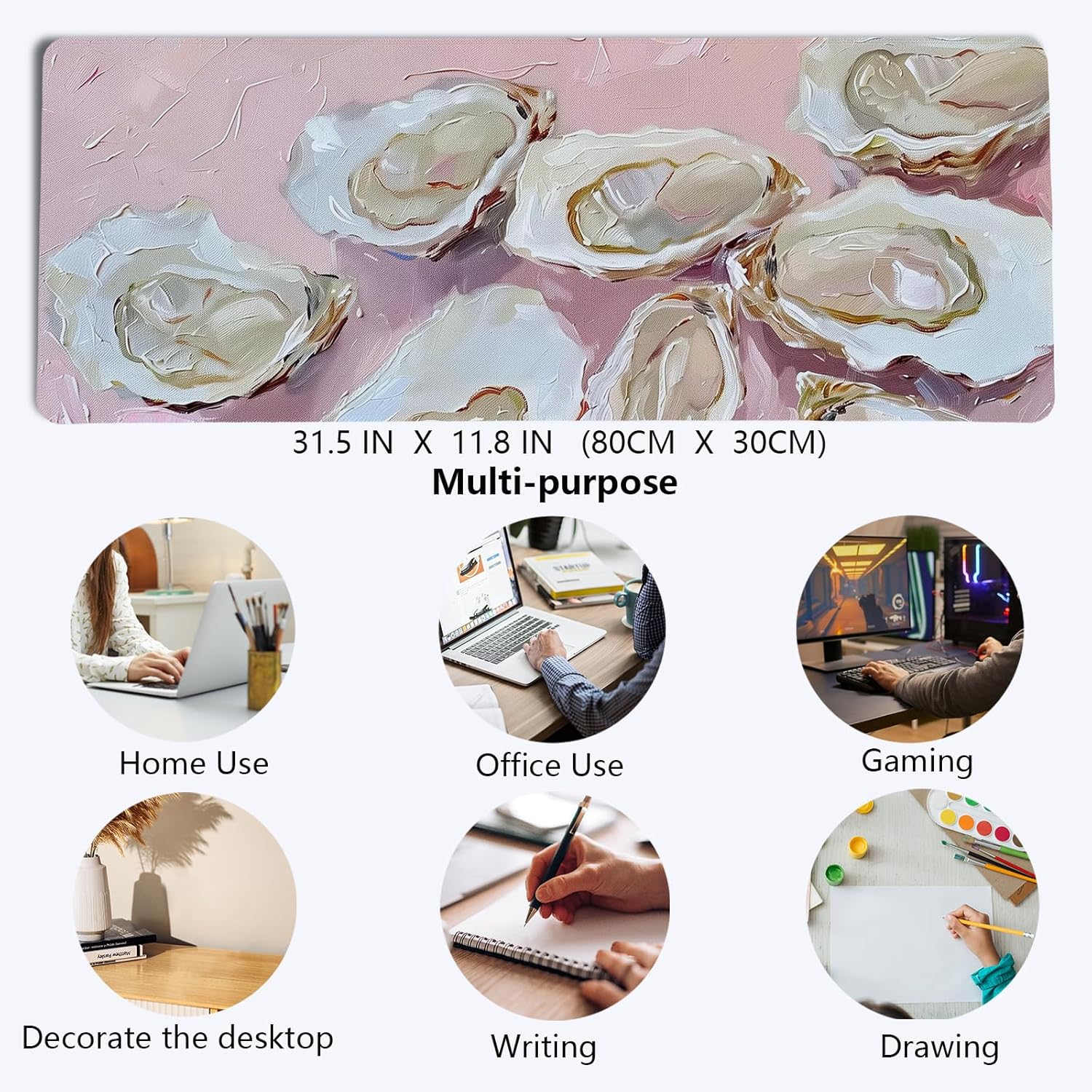 Pink Ocean Coastal Art Mouse Pad,Colorful Beachy Seashell Mouse Pad,XL Large Oyster Abstract Art Desk Mat,Girly Laptop Desk Mat,31.5x11.8 Inch