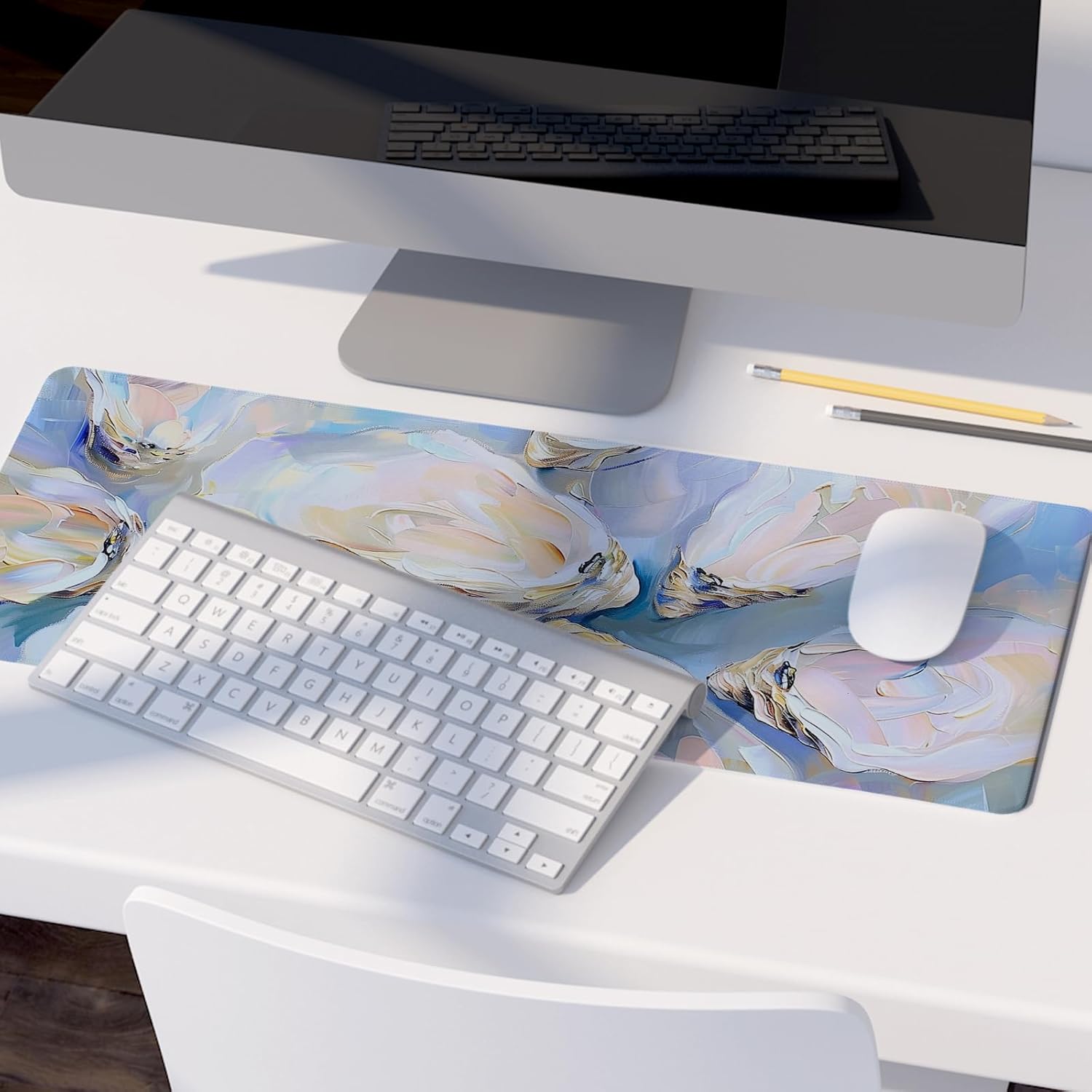 Blue Ocean Coastal Art Mouse Pad,Colorful Beachy Seashell Mouse Pad,XL Large Oyster Abstract Art Desk Mat,Girly Laptop Desk Mat,31.5x11.8 Inch