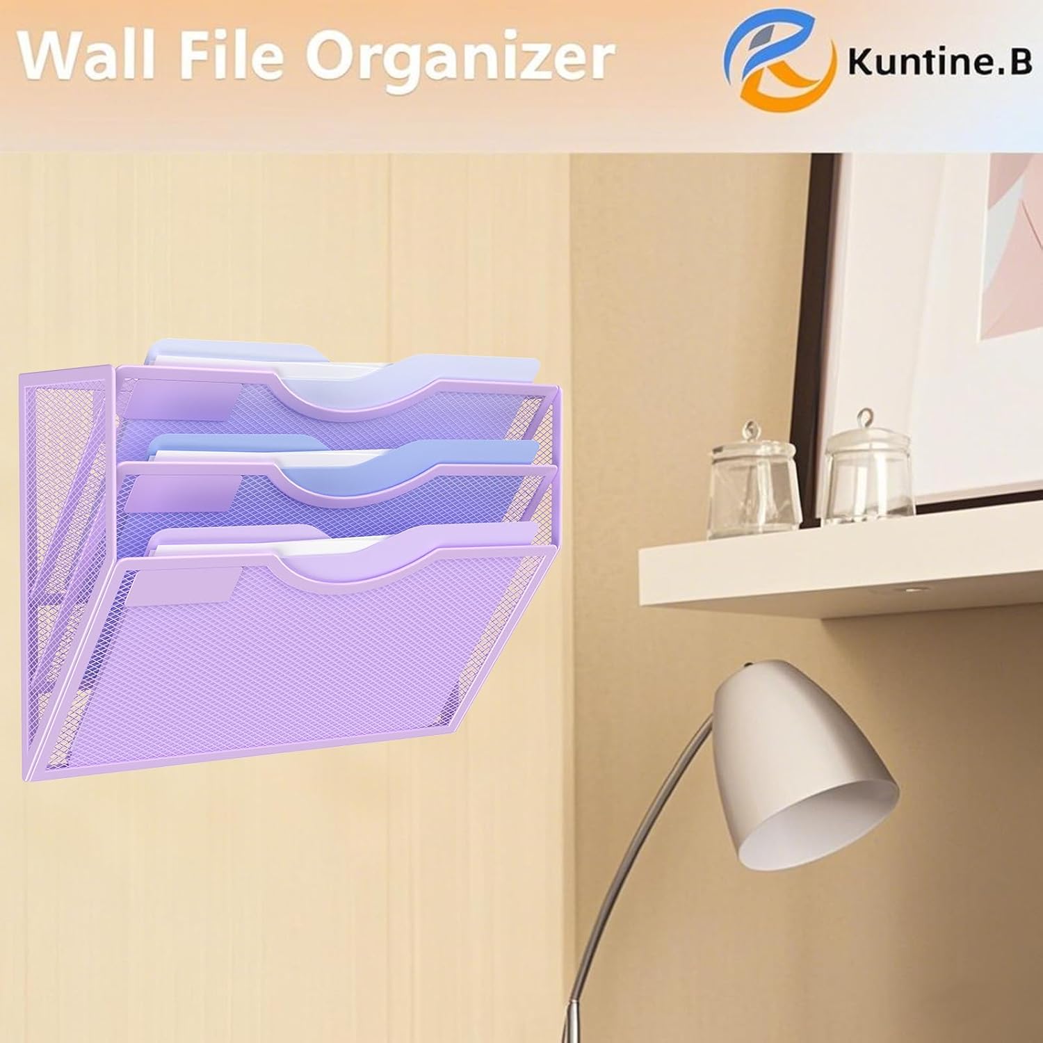 Kuntine.B 3 Pocket Wall File Holder Organizer Office Hanging Magazine Holder Wall File Organizer for Office Home (Purple, 3 Tier)