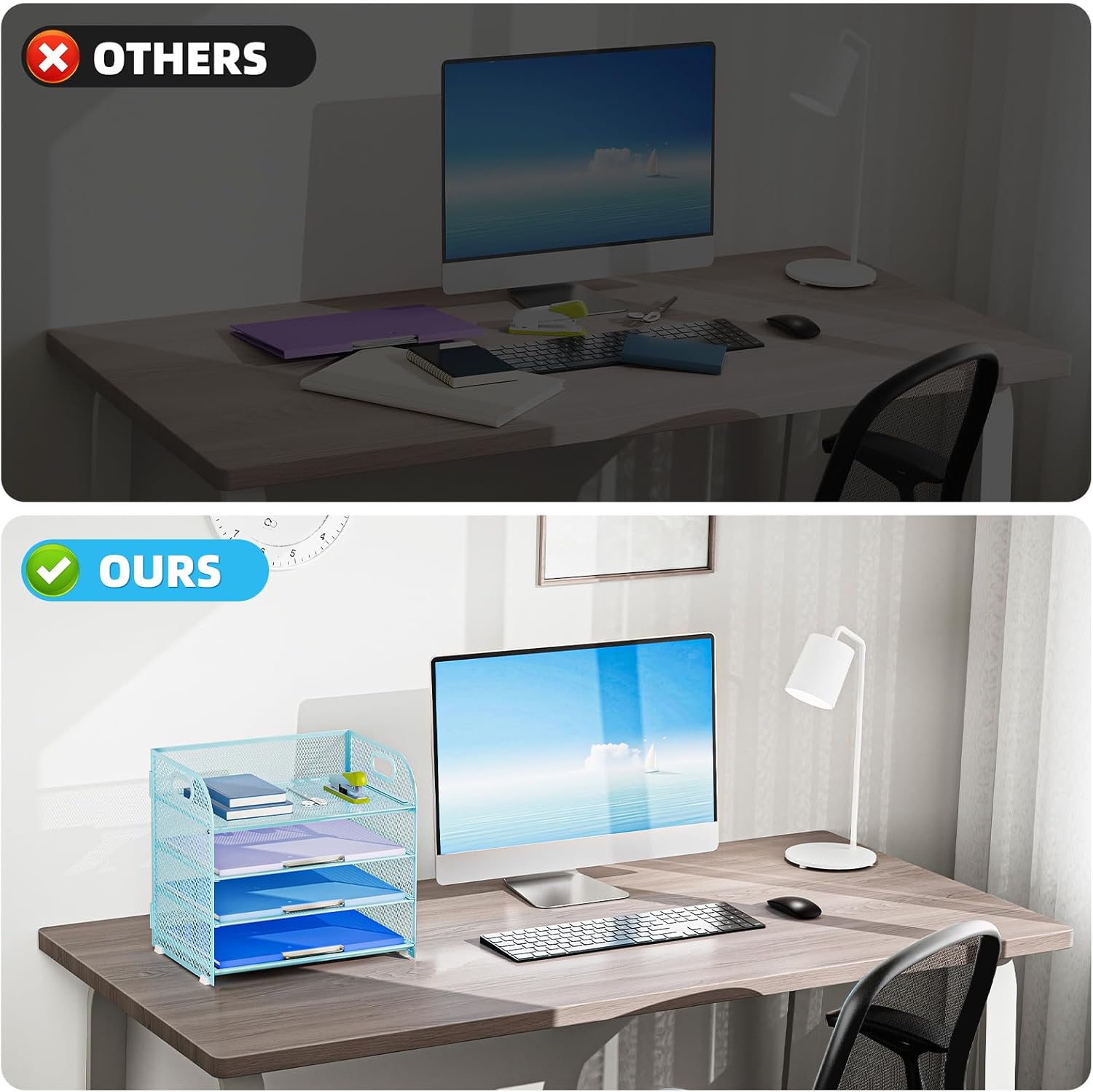 Marbrasse 4 Tier Paper Organizer Letter Tray - Mesh Desk File Organizer with Handle, Paper Sorter Organizer for Letter Office File Folder Holder (Blue, 12.6" x 9.1" x 10.7")