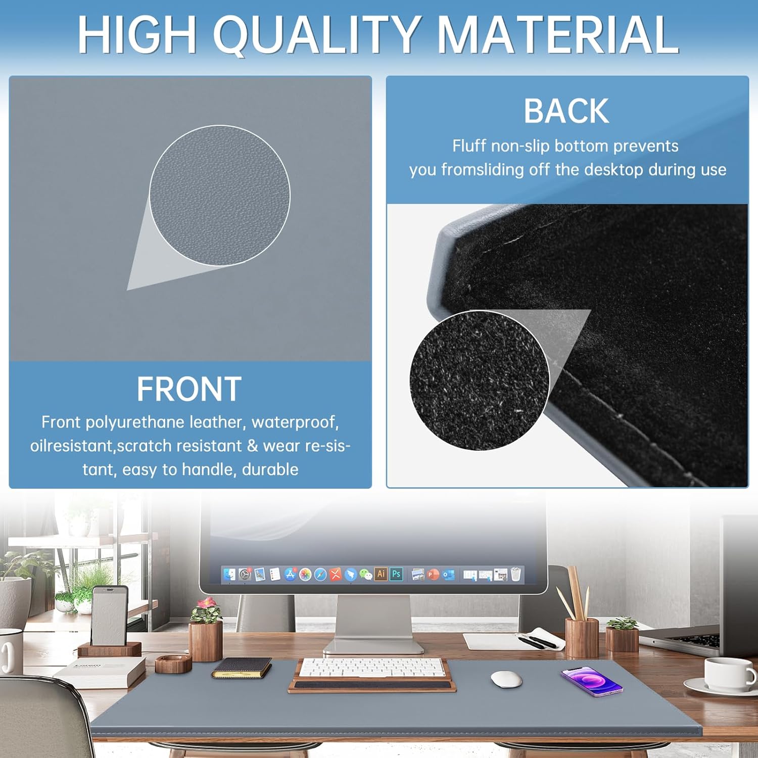 AKOZLIN 35.4"x 18.9" Soft PU Leather Surface Office Desk Mouse Mat Anti-Push Pad with Full Grip Fixation Lip Table Blotter Edge-Locked Protector Grey