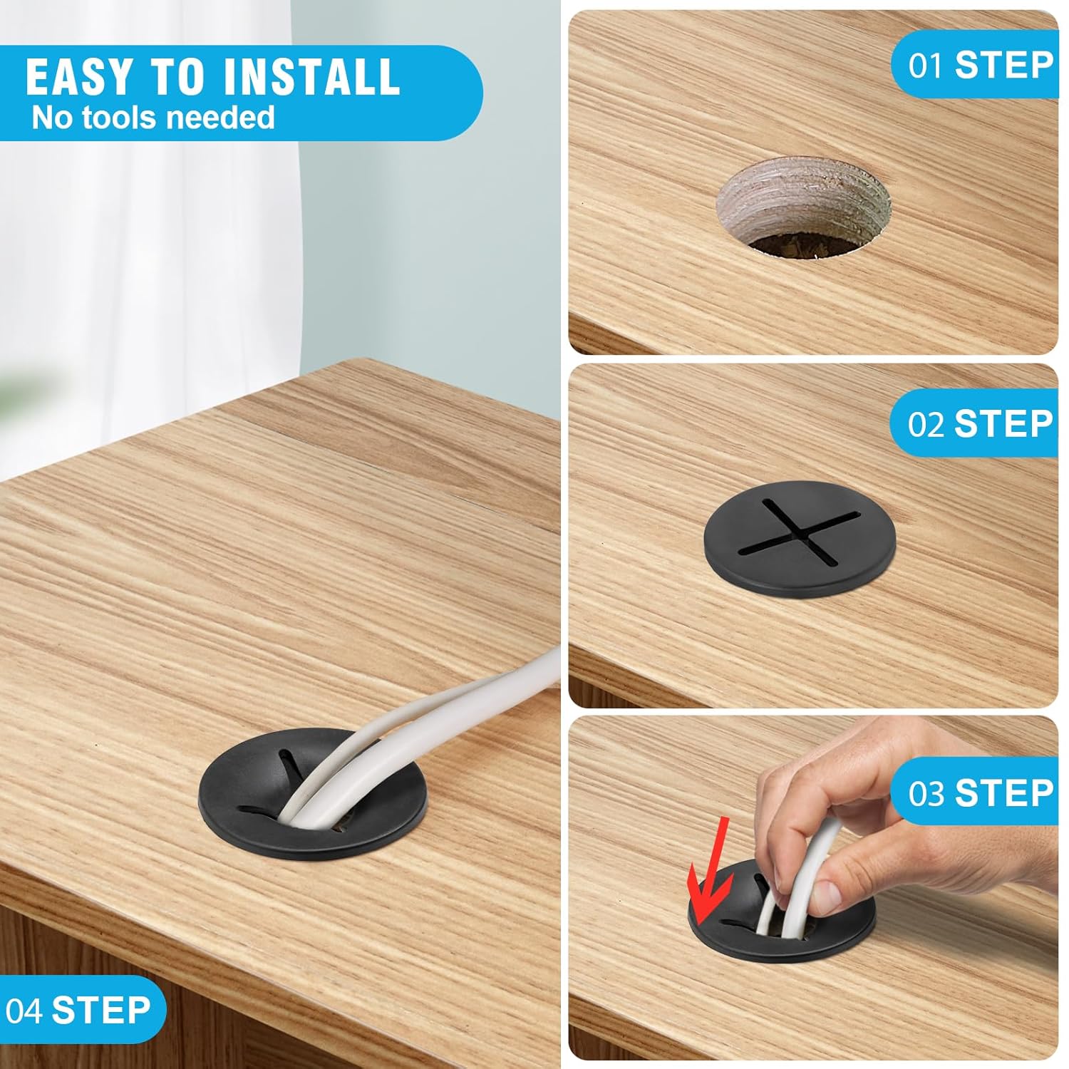 - DELIGHTS PACKAGE -- Your package includes 10 x 25mm desk grommets. Useful Tips: ① Make sure the hole's edges are smooth and free of splinters that could damage your cables or the grommet, ② Place the grommet into the hole. It should fit snugly, ③ Finally, route your cables through the desk grommet.