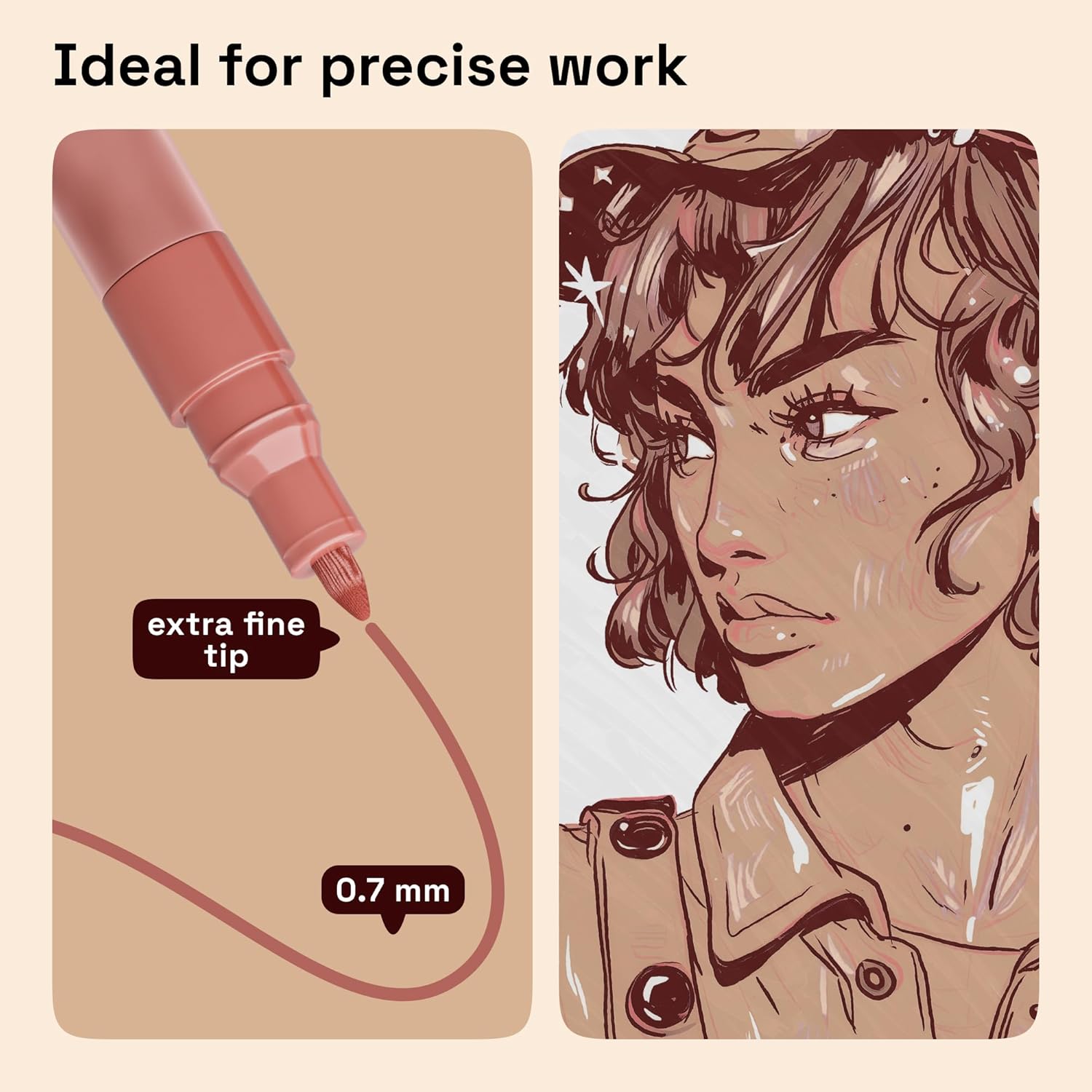 - 12 Skin-Tone Colors: This set of acrylic markers includes 12 portrait colors from light to deep shades. Perfectly designed for drawing skin, faces, hair, bodies, manga, portraits, illustrations, sketches, and other detailed art projects.
