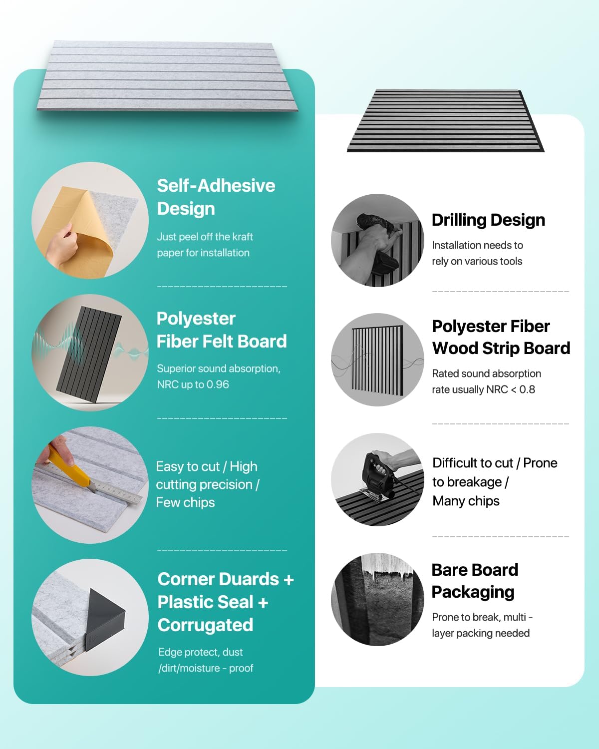 - Sound Absorption: The 0.35-inch thick felt panels can absorb up to 35% of sound waves, effectively reducing indoor echoes and background noise; create a quieter environment for home offices, study rooms, recording studios or classrooms to help improve concentration