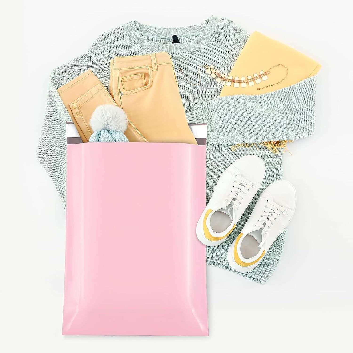 - Large Poly Mailers-The Fuxury 14.5X19" plastic shipping bags,pack of 400pcs. The bulk light pink packing bags save your time on reordering.