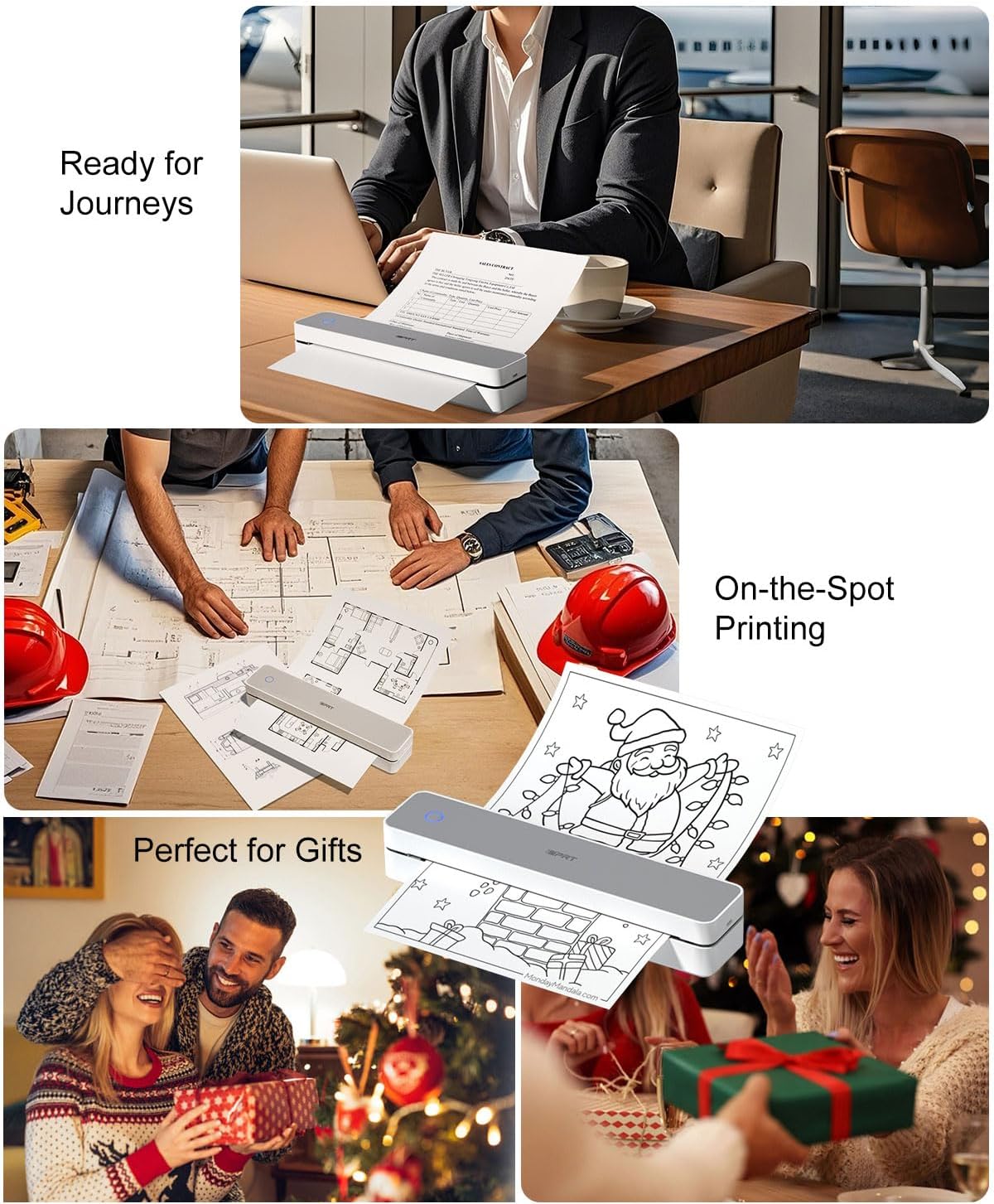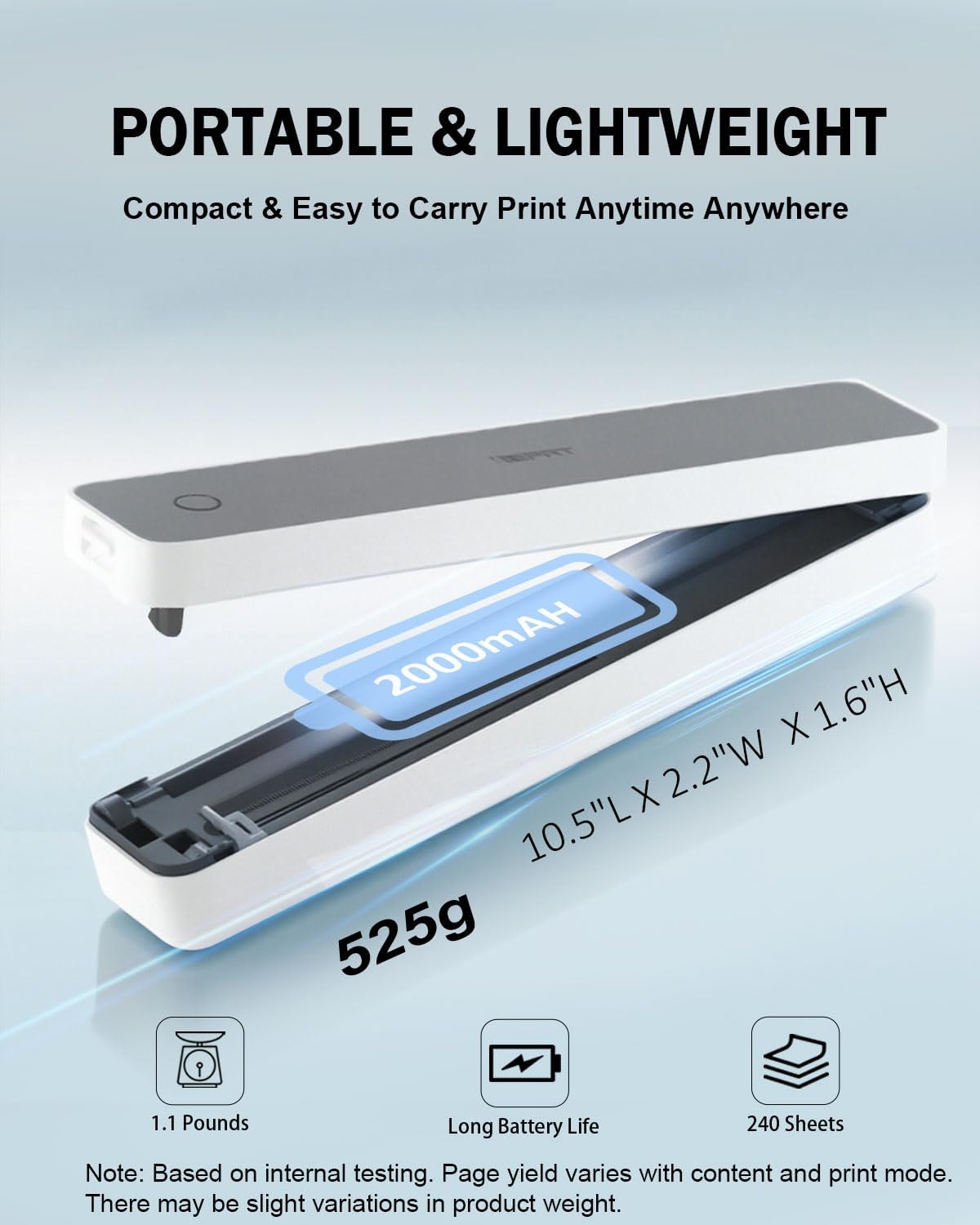 - Ultra Light Travel Printer: At just 1.1lb (526g) and 1.6 inches thick, this portable thermal printer fits easily into your backpack or work bag. Whether you're on a business trip, campus, cafĆ©, or coworking space, print contracts, lecture notes, or documents on the goāno desk needed!