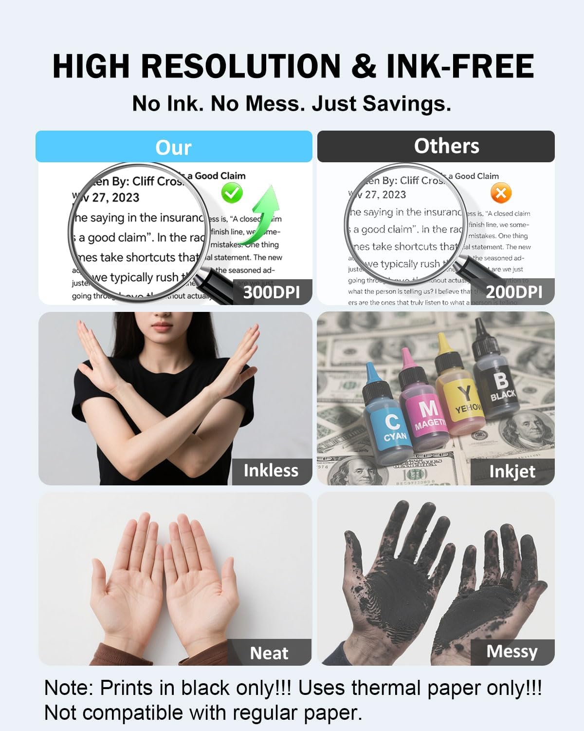 - Inkless Thermal Printer ā No Ink, No Mess! Say goodbye to cartridges and toner! The iDPRT 610Pro portable printer uses advanced thermal technology for clean, cost-effective, 300DPI printingāanytime, anywhere. Includes: printer, 10 sheets thermal paper, USB-C cable & free app.(ā ļø Only compatible with black & white thermal paper. Not for inkjet/laser paper).