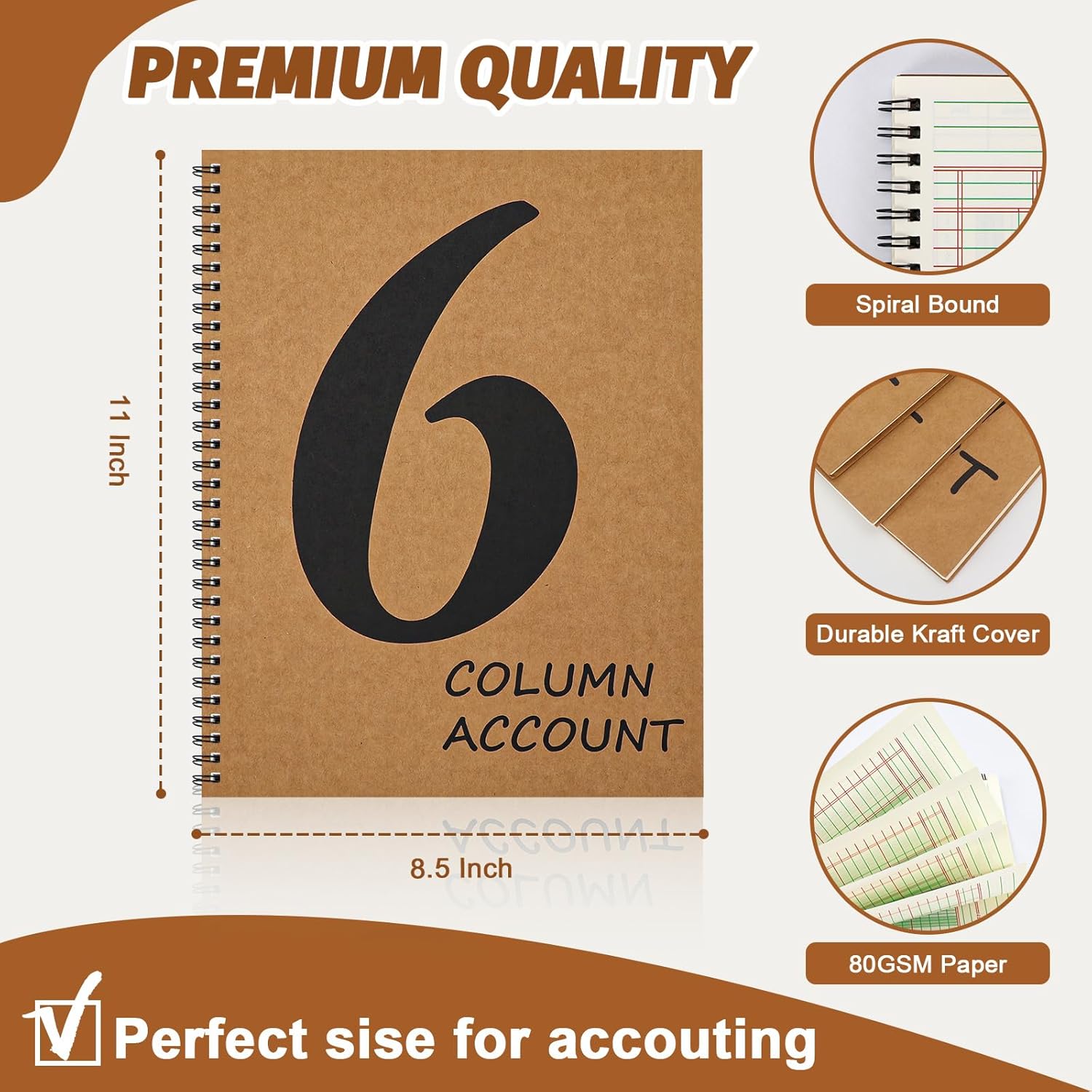 - 【Large Size And Multiple Quantity】The size of this accounting ledger book is 8.5*11 inches. It is large enough for you to write freely. One accounting ledger book 6 column contains 100 pages of paper, double-sided color printing, which can meet your long-term accounting needs.