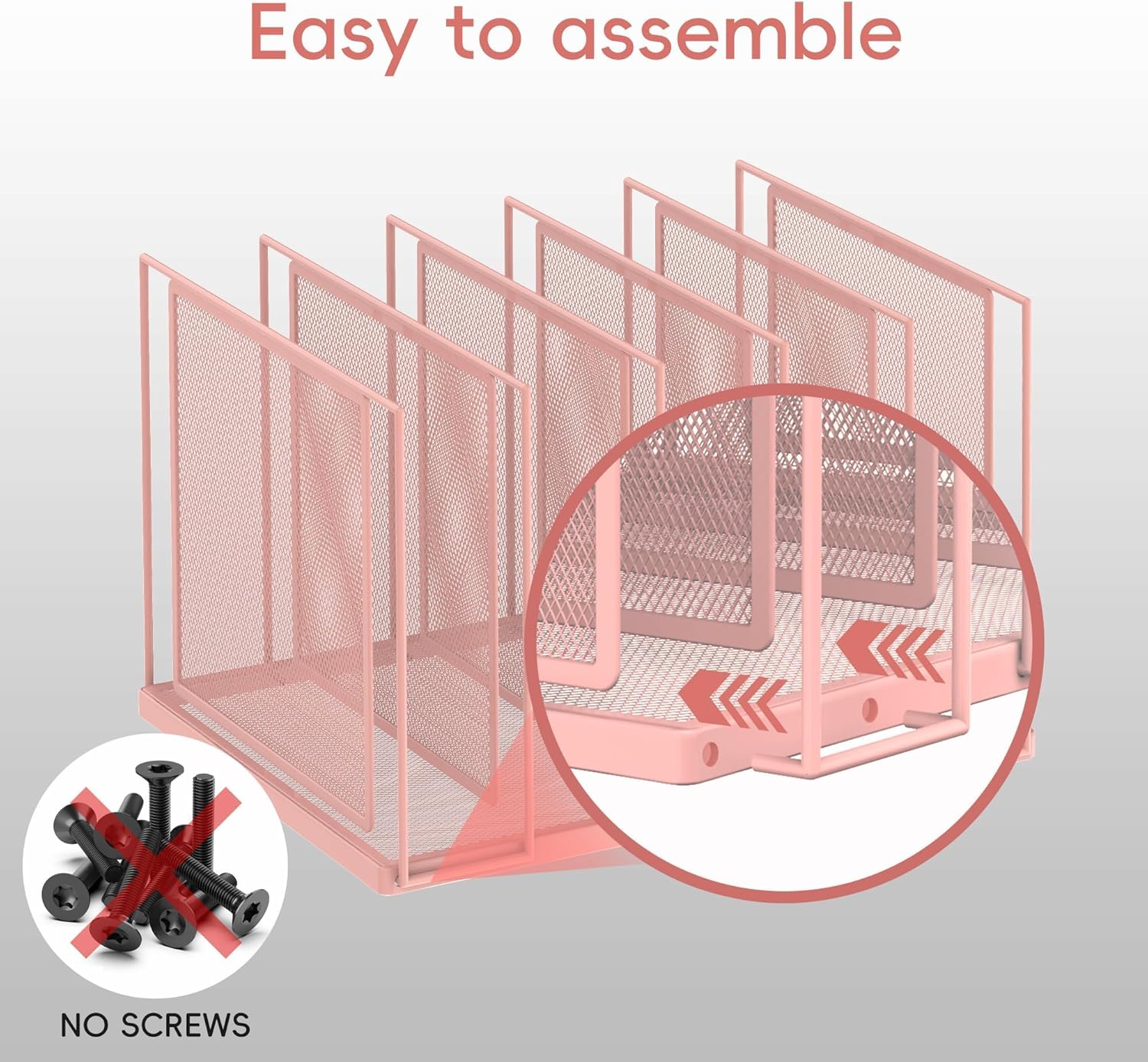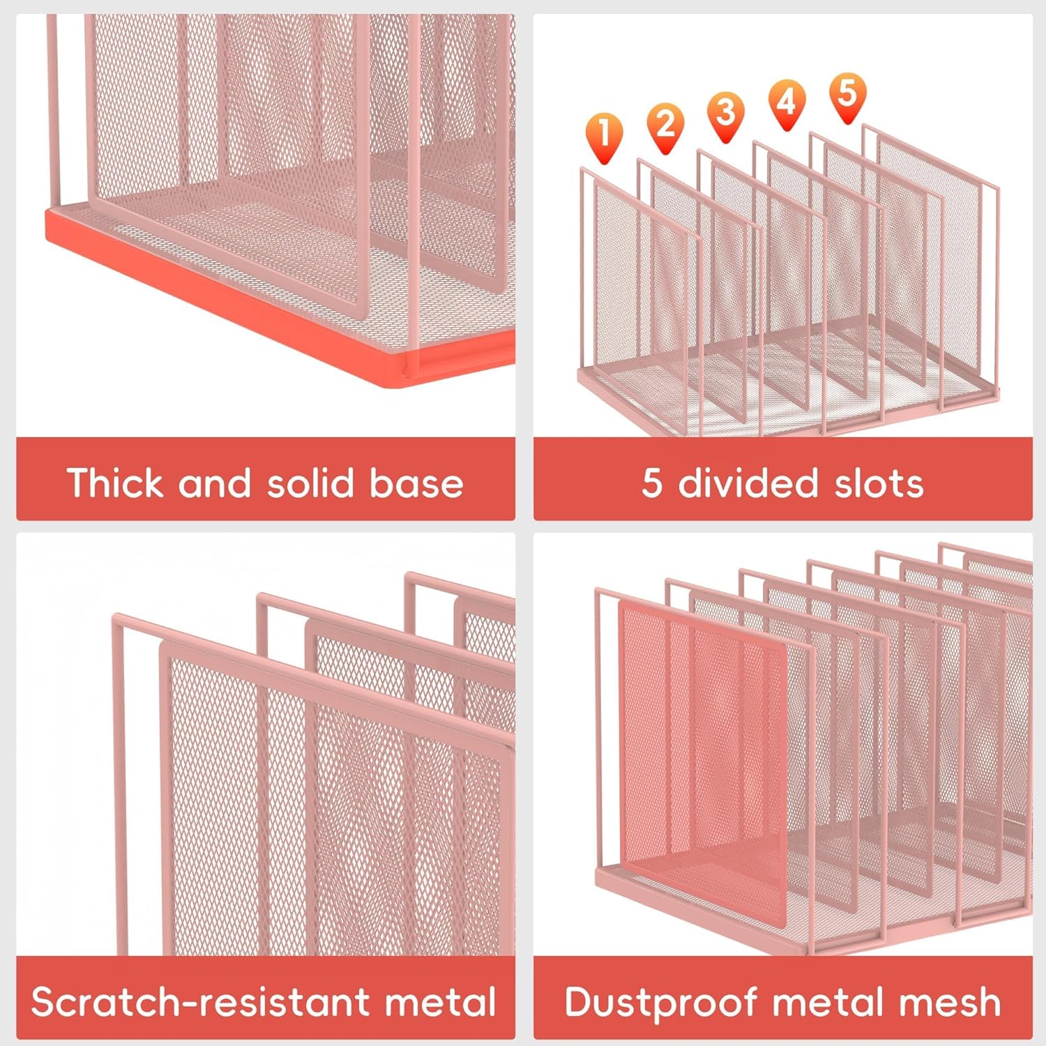 File Organizer for Desk, 5-Section Vertical File Sorter, Paper Holder Organizer Standing Metal File Folder for Office Home Classroom, Pink