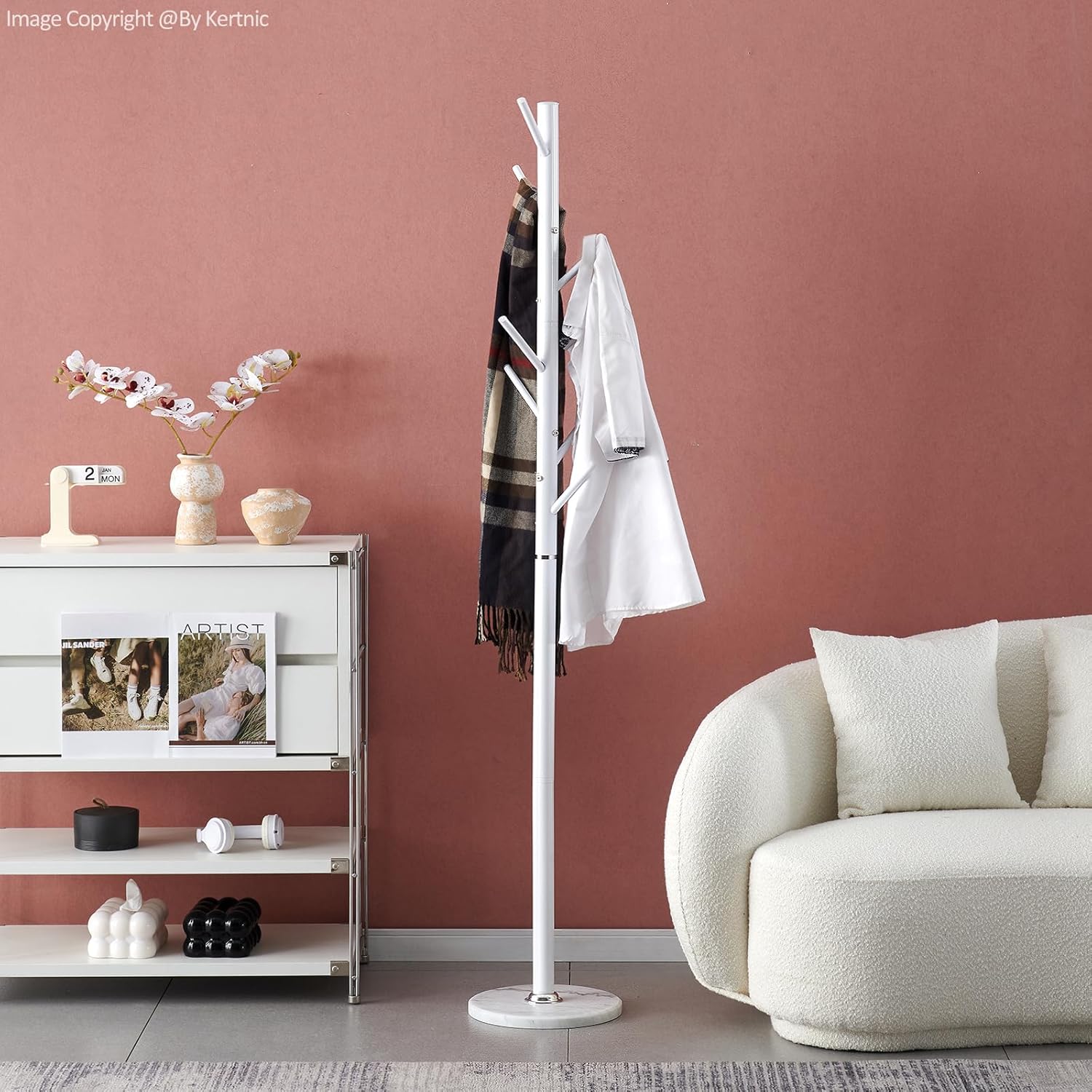 Kertnic Modern Coat Rack Freestanding with Natural Marble Base & Sturdy Metal Frame, 7 Hooks Hall Tree for Jackets, Hats, Bags, Entryway Organizer for Bedroom, Living Room, Closet (7 hooks-White)