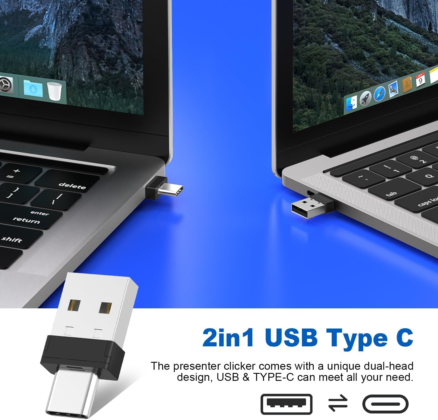 QUI Presentation Clicker Wireless Presenter Remote Clicker for PowerPoint Presentation Remote, PowerPoint Slide Advancer for Mac/Windows/Linux, Google Slide/PPT/Keynote, Type-c, Black