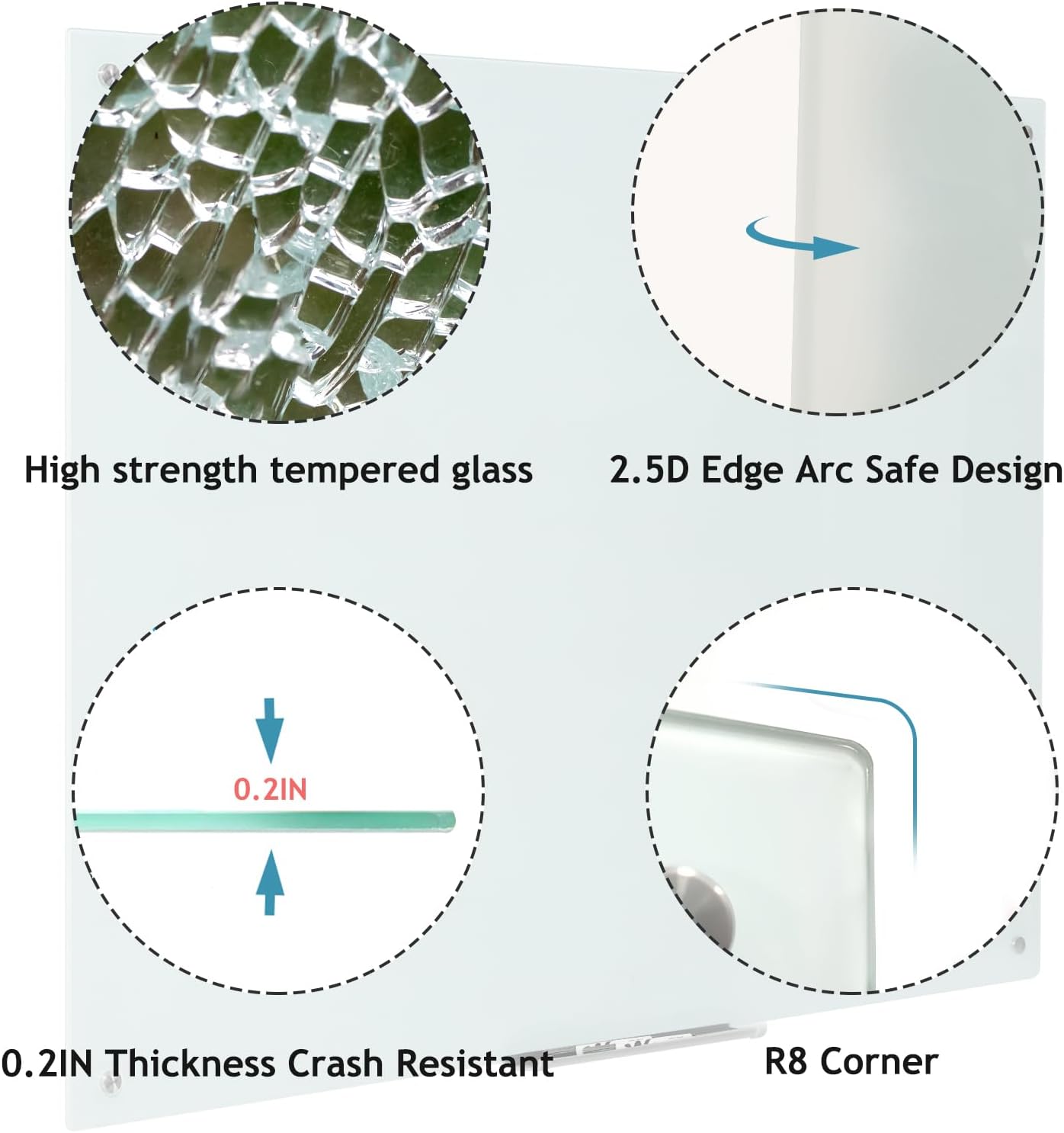 - Unmatched Durability: Our magnetic glass whiteboard features premium, high-temperature-treated glass material that is meticulously selected for superior quality and outstanding durability. With excellent scratch resistance, this high-quality glass ensures long-lasting performance, while its crystal-like texture adds an elegant touch. Experience resilience that stands the test of time.