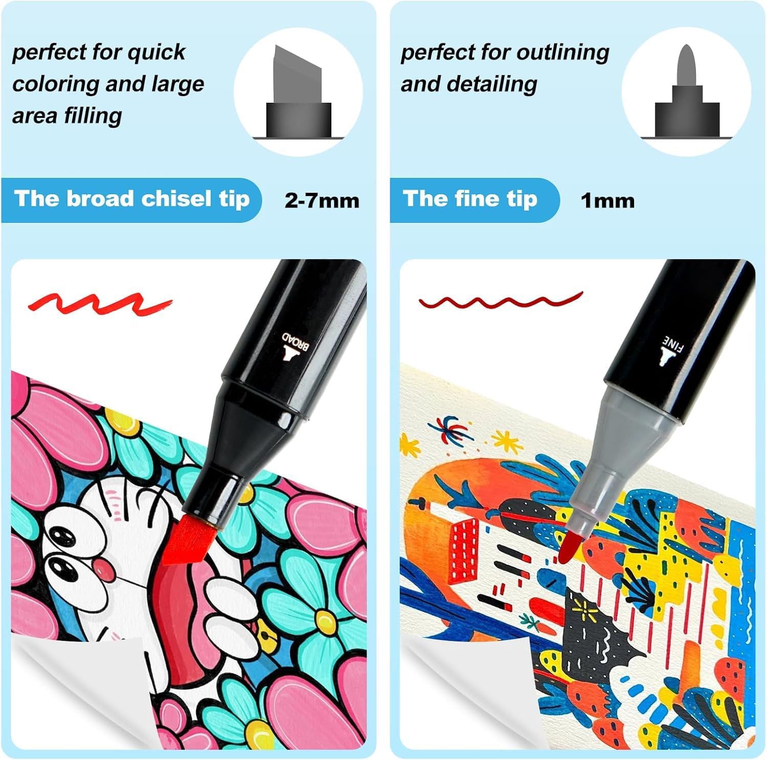 80 Colors Alcohol Markers, Dual Tip Permanent Art Markers with Black Suitcase, For Adults Coloring, Sketching, Card Making and DIY Patinting