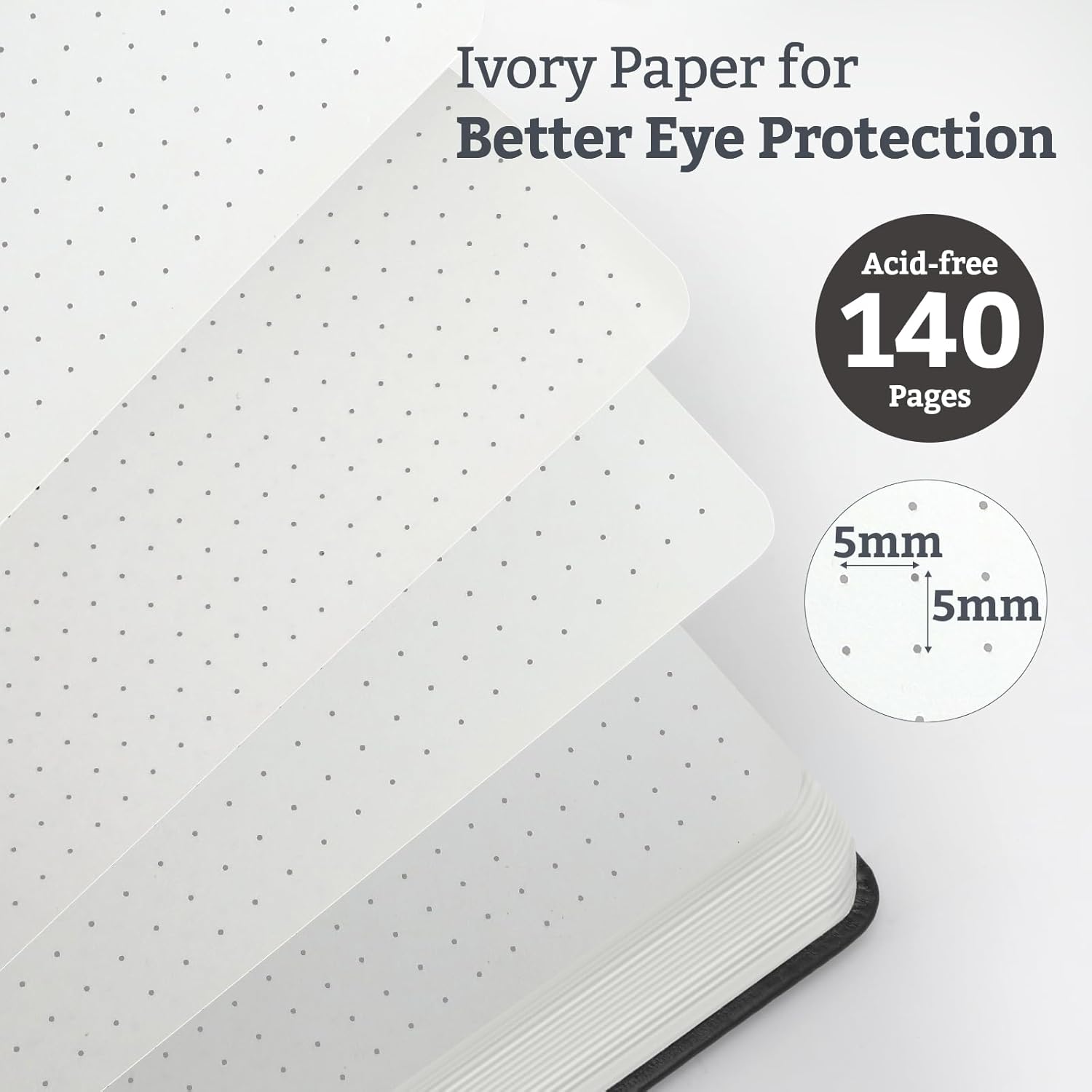 Hardcover Lined Bullet Dotted Journal Notebook, A5 140 192 Pages 100 120Gsm Paper College ruled for School,Work,Travel,and Daily Planning,5.7''*8.3'' (1, Black, A5 Dotted)