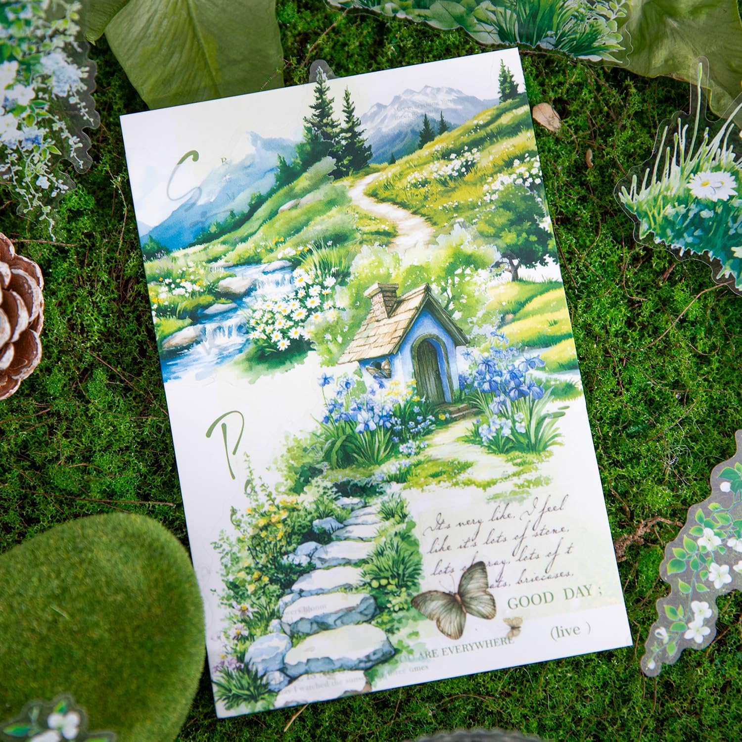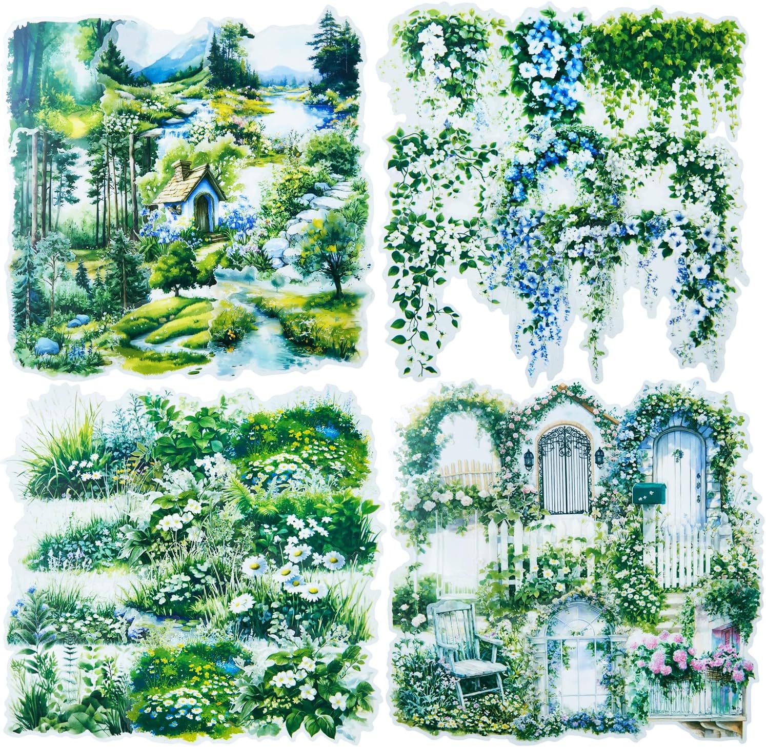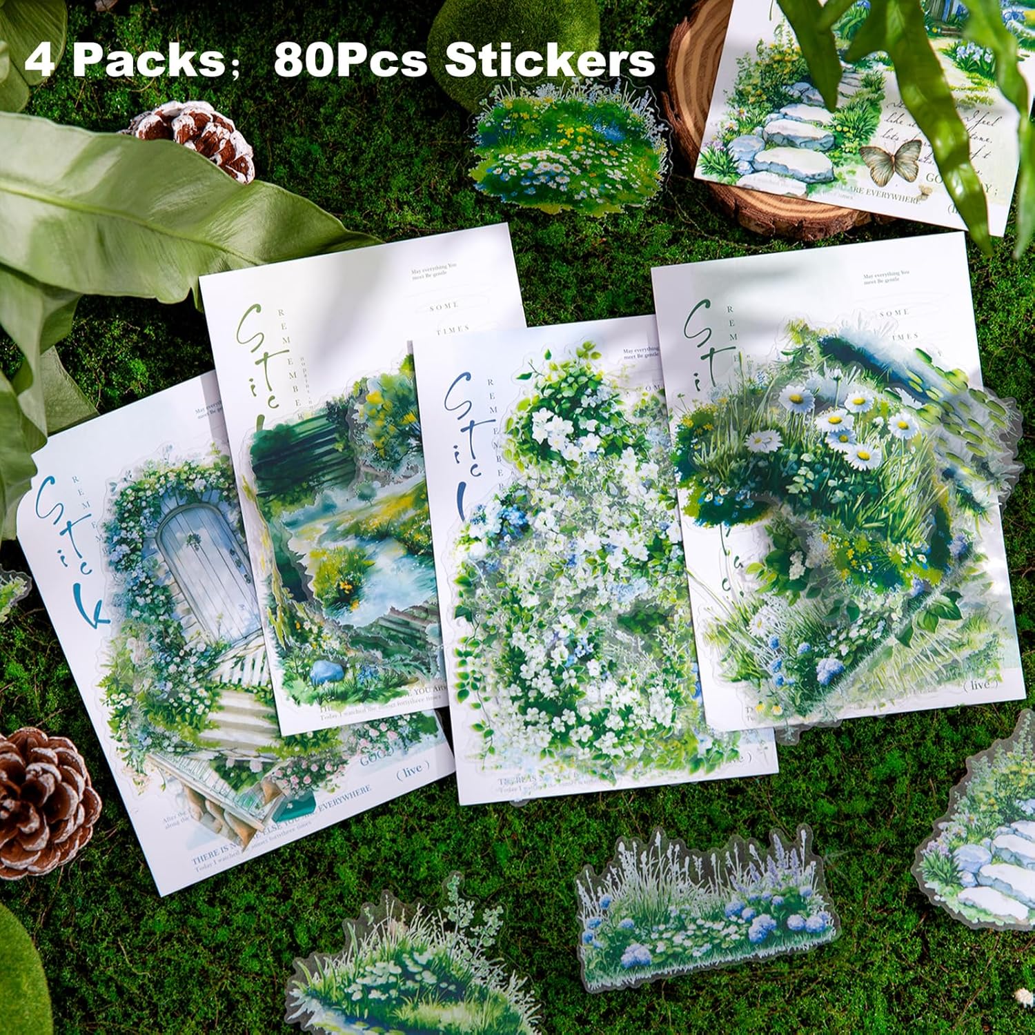 - Nature-Inspired Sticker Set: This set includes 80 PET stickers across 4 unique themes, each featuring 10 intricate designs and 20 sheets per style. Inspired by lush greenery, blooming gardens, serene mountains, and rustic cottages, these stickers add a touch of artistic nature to your scrapbooking, journaling, and creative projects