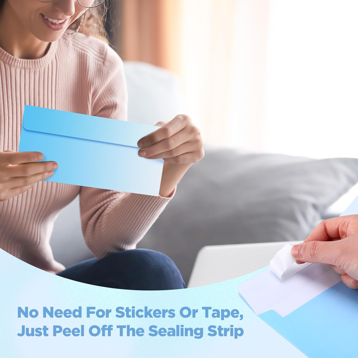 100 Pcs #10 Business Envelopes Colorful Self Adhesive Standard Envelopes Gradient for Office Check Invoices Letters Letterhead Invitations Announcements 4-1/8 x 9-1/2''(Gradient Blue)