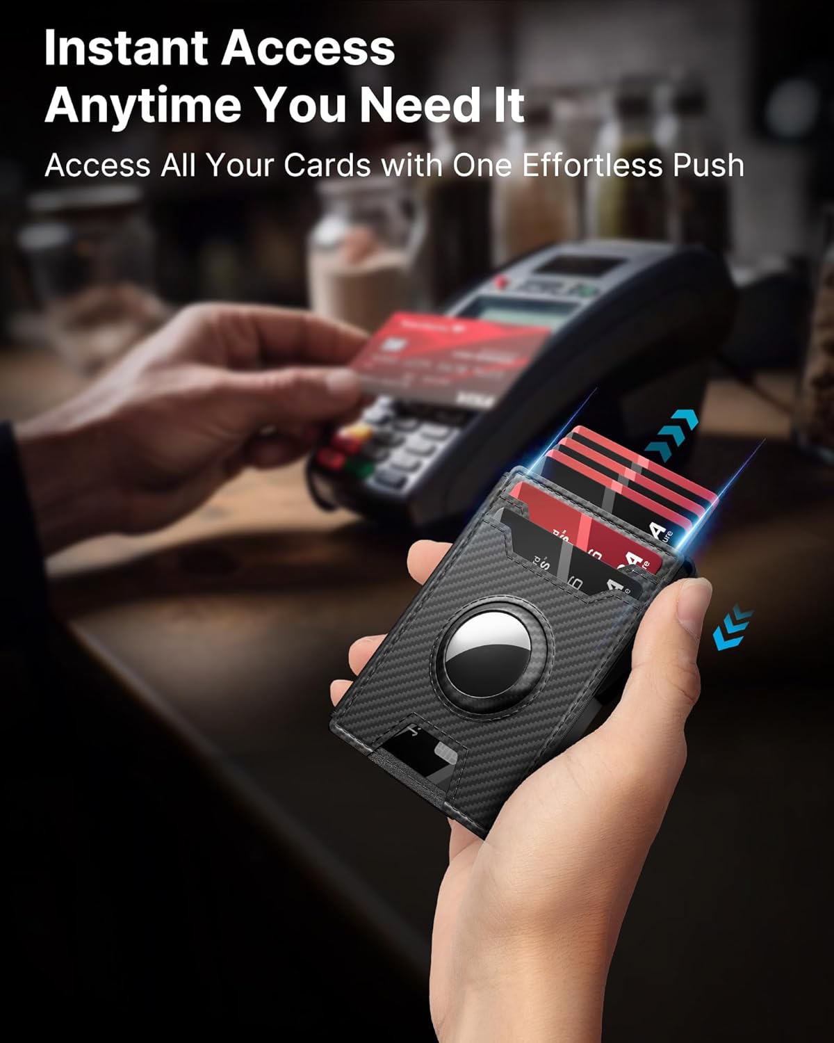 typecase AirTag Wallet for Men: Pop Up Card Case, Secure Holder for Apple Air Tag, Premium Leather, Smart, RFID Blocking, Slim, Minimalist, 13 Cards Capacitiy | ID Window | Money Clip (Carbon Fiber)