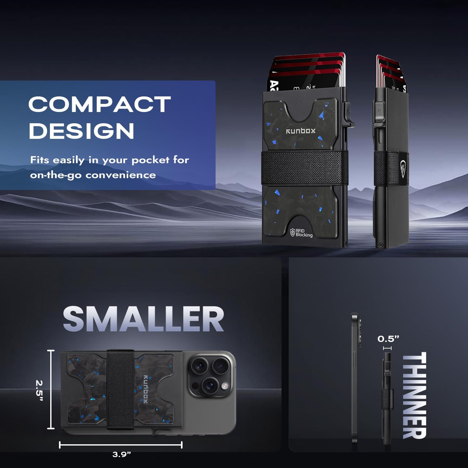 - SLIM WALLET FOR MEN with Ultra Thin & Lightweight Design: At just 0.5" thick and 2.6oz, this minimalist tactical wallet slips seamlessly into any pocket. Dimensions: 3.9"x2.5" – perfect for discrete everyday carry. The innovative expandable backplate adds storage without bulk, letting you ditch oversized wallets