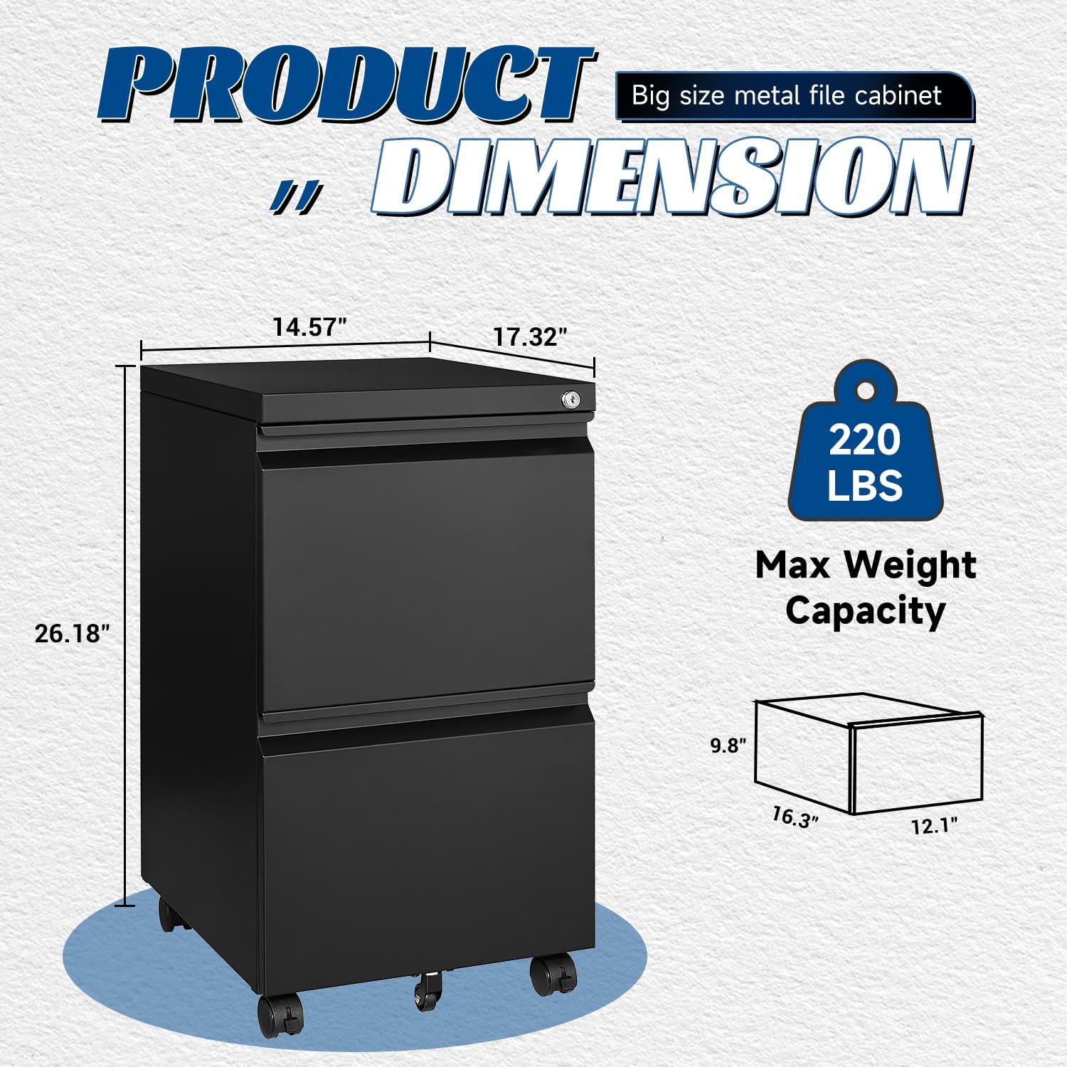 - MOVABLE FILE CABINET - With the five 360°rotating foot wheels on the filling cabinet, your can easily move this metal file cabinet, and all the wheels are made of high-strength plastic, which can support metal cabinets filled with files.