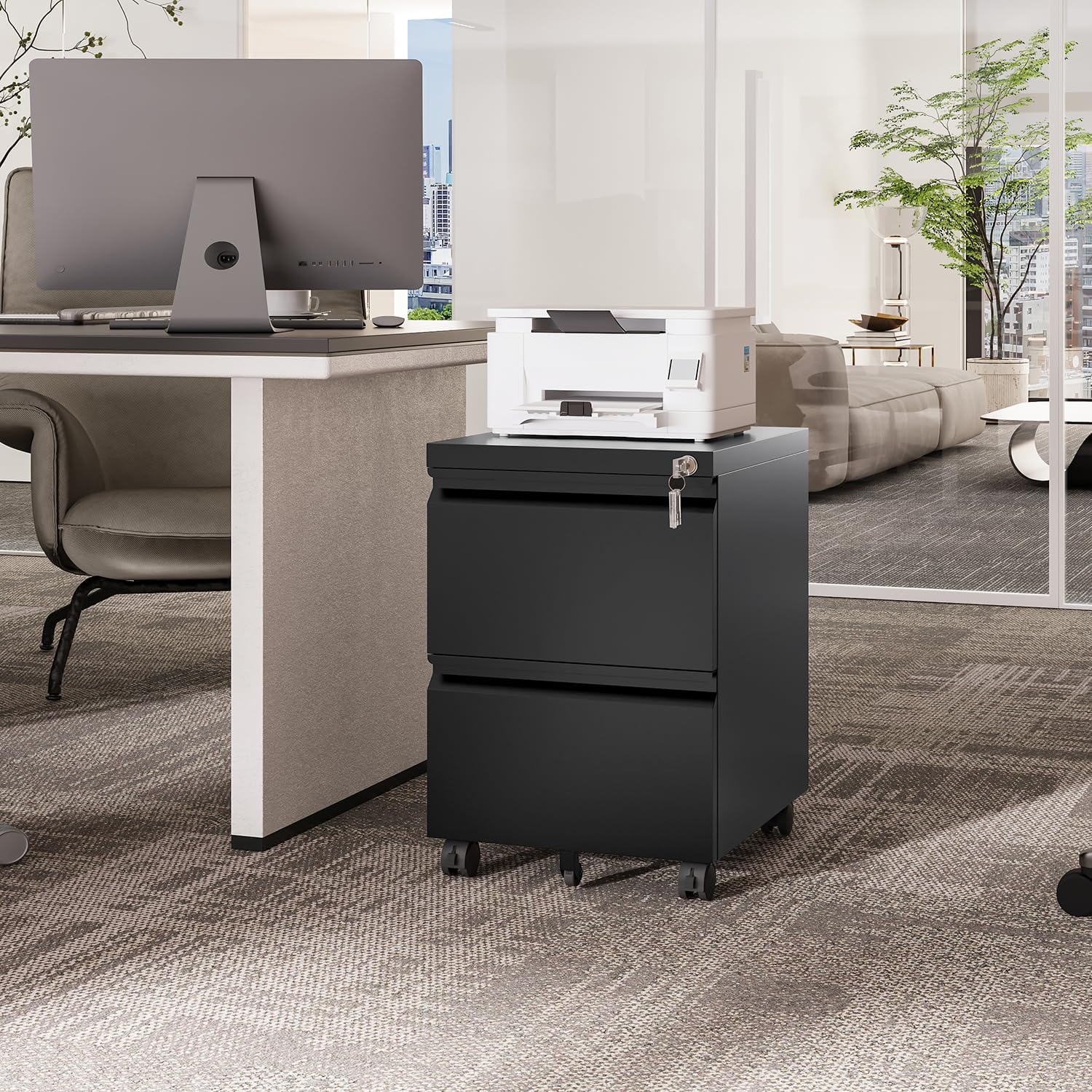 - CAN BE PLACED EVERYWHERE - Thanks to the compact design and five flexible wheels of this filing cabinet, you can easily putting it under the desk, next to the sofa, in the bedroom to using as a under desk file cabinet, a bedside tables etc.