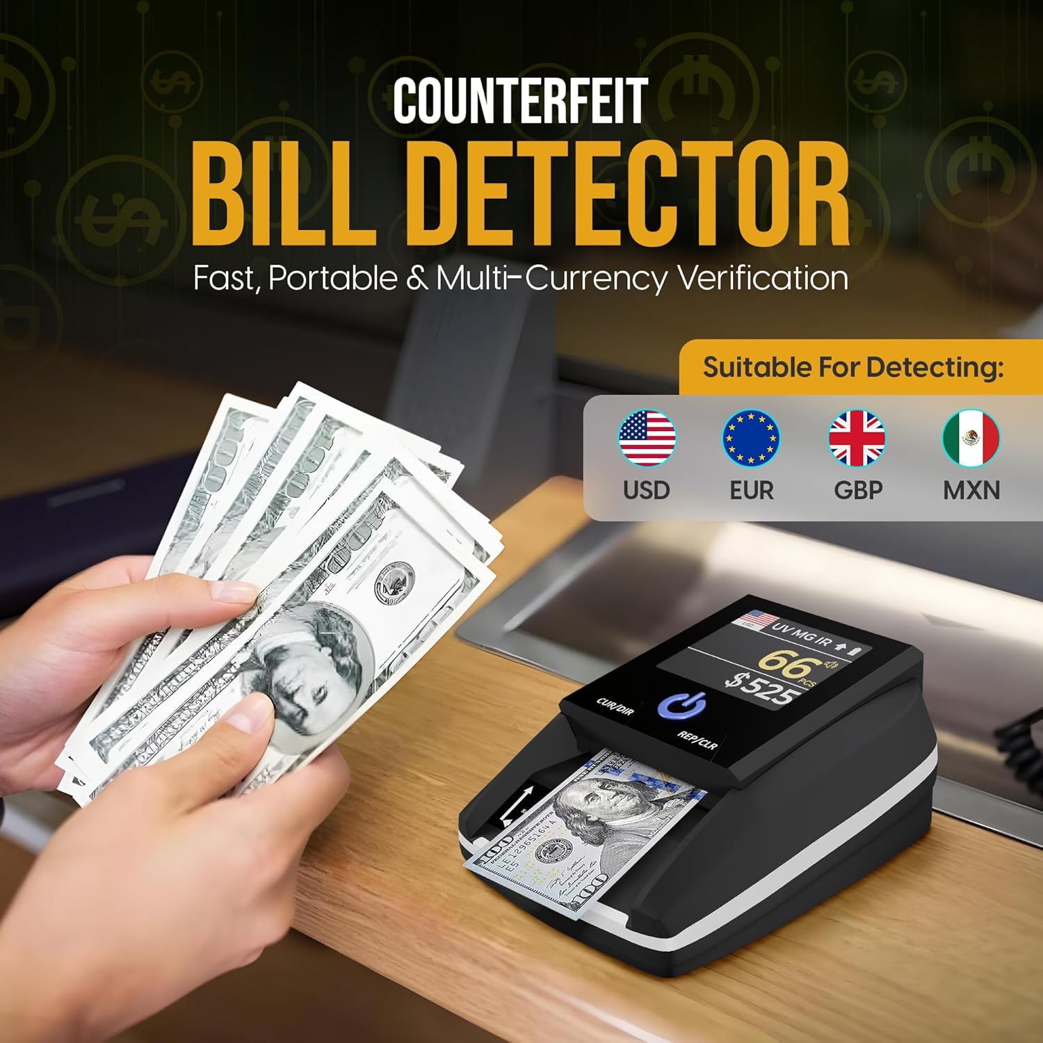 - Multi-Currency Validation Effortlessly verify USD, EUR, GBP and MXN in one compact unit—perfect for retail shops, small offices and businesses handling international cash