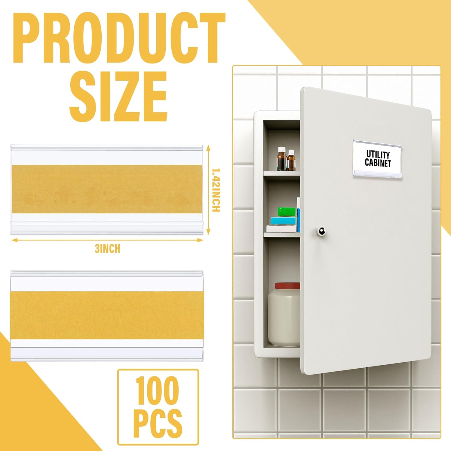 Kathfly 100 Pcs 3 x 1. 4 Inch Self Adhesive Label Holders Nameplate, Clear Shelf Label Holders Plastic Name Price Tag Strip Door Plates for Supermarket Retail Store Home Office Desk Storage Bins