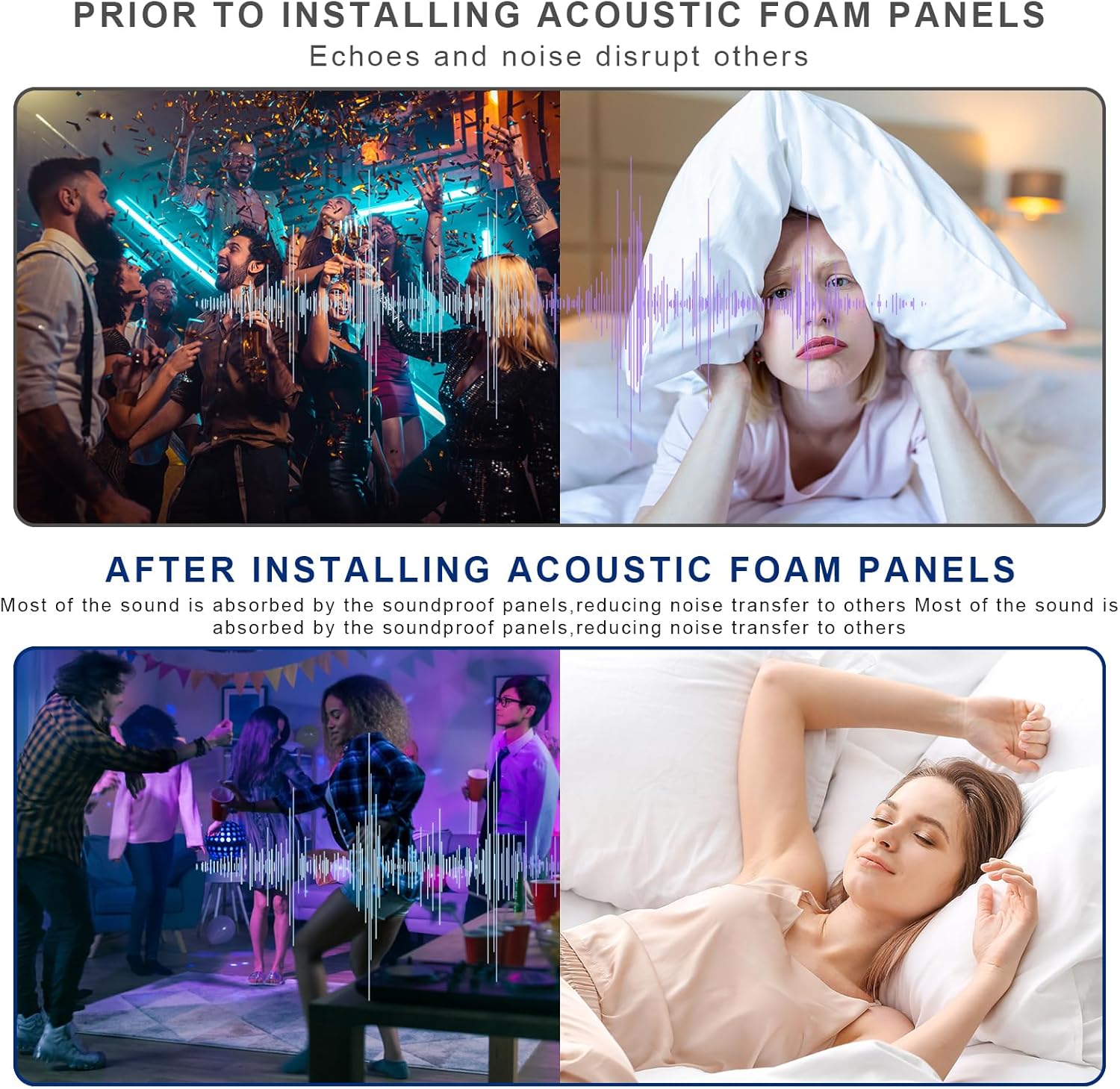 - 【Versatile Use】These acoustic foam panels are great for targeting specific areas on walls to improve sound quality in a variety of settings such as recording studios, control rooms, home offices, home entertainment theaters, home studios, podcasting, pet kennels and more. More sound foam panels and the effect are better.