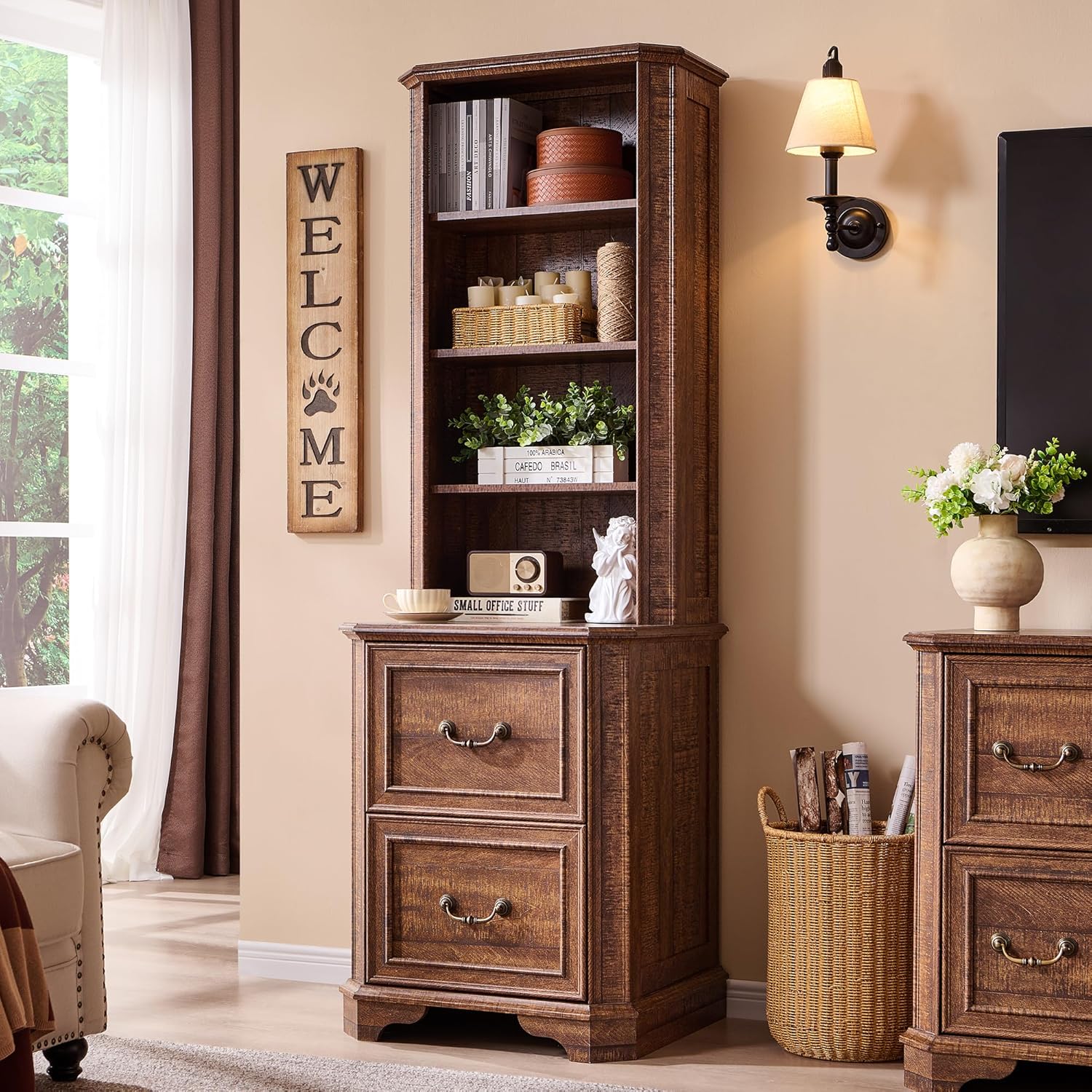- Build with Hexagonal Reinforced Structure: Built for durability, this bookshelf with drawers (21"D x 23.5"W x 72"H) features a 1.18-inch thick top panel and a 3-inch wood base for superior stability. The unique hexagonal design not only enhances structural integrity but also reduces sharp edges, prioritizing safety. Made from FSC-certified engineered wood, each shelf can support a maximum weight of 80 lbs and a minimum of 20 lbs, making it ideal for heavy books and office essentials