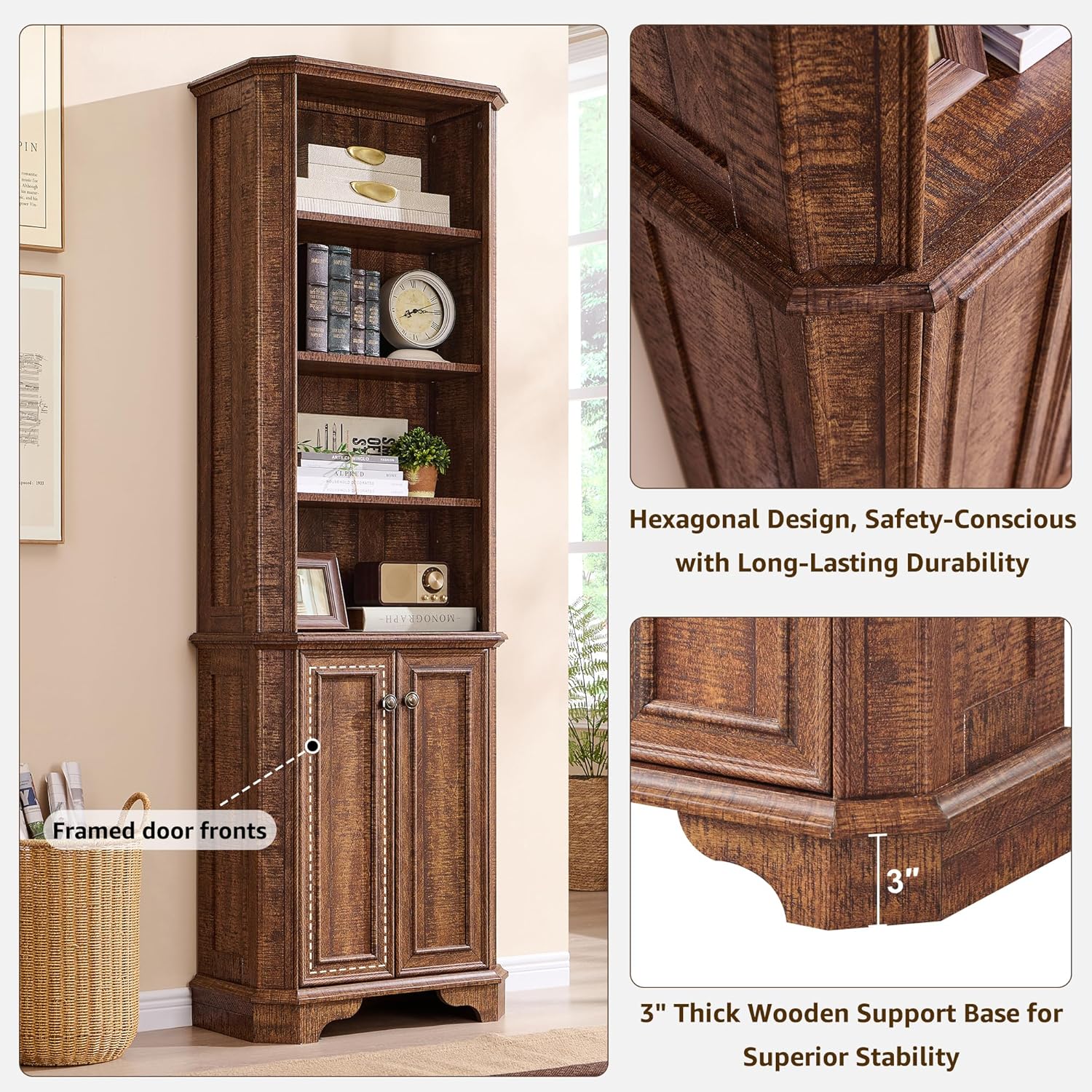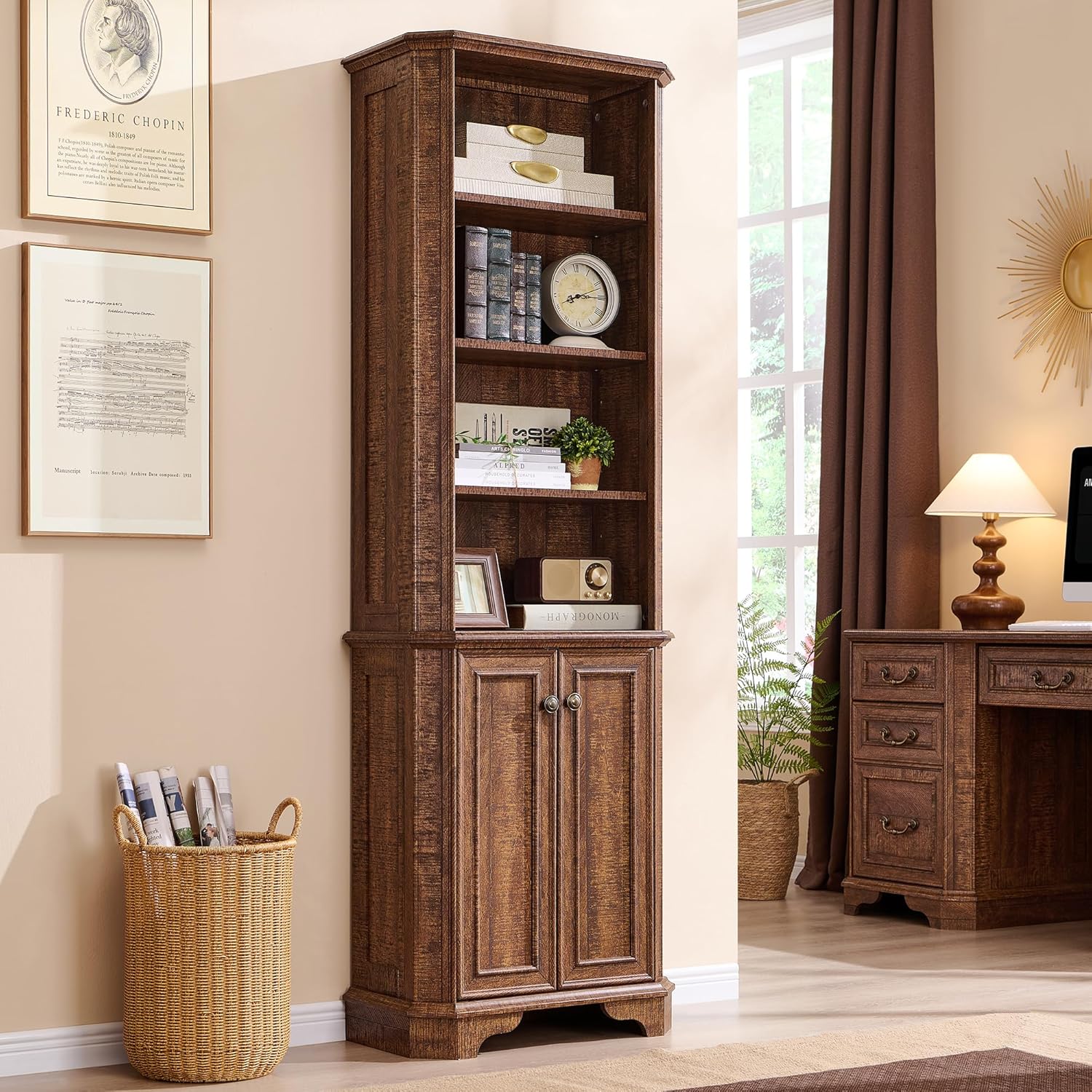 - Elegant & Sturdy 6-Tier Farmhouse Bookshelf with Farmhouse Charm: Upgrade your home office or living space with this 6-tier wood bookshelf, measuring 23.5âW x 11.7âD x 72âH. Designed to double as both a bookcase and a storage cabinet, it blends Victorian-style elegance with modern durability. The framed door fronts, hand-polished vintage mushroom knob, and a natural wood grain finish create a refined yet rustic aesthetic, enhancing any office or home dĂ©cor