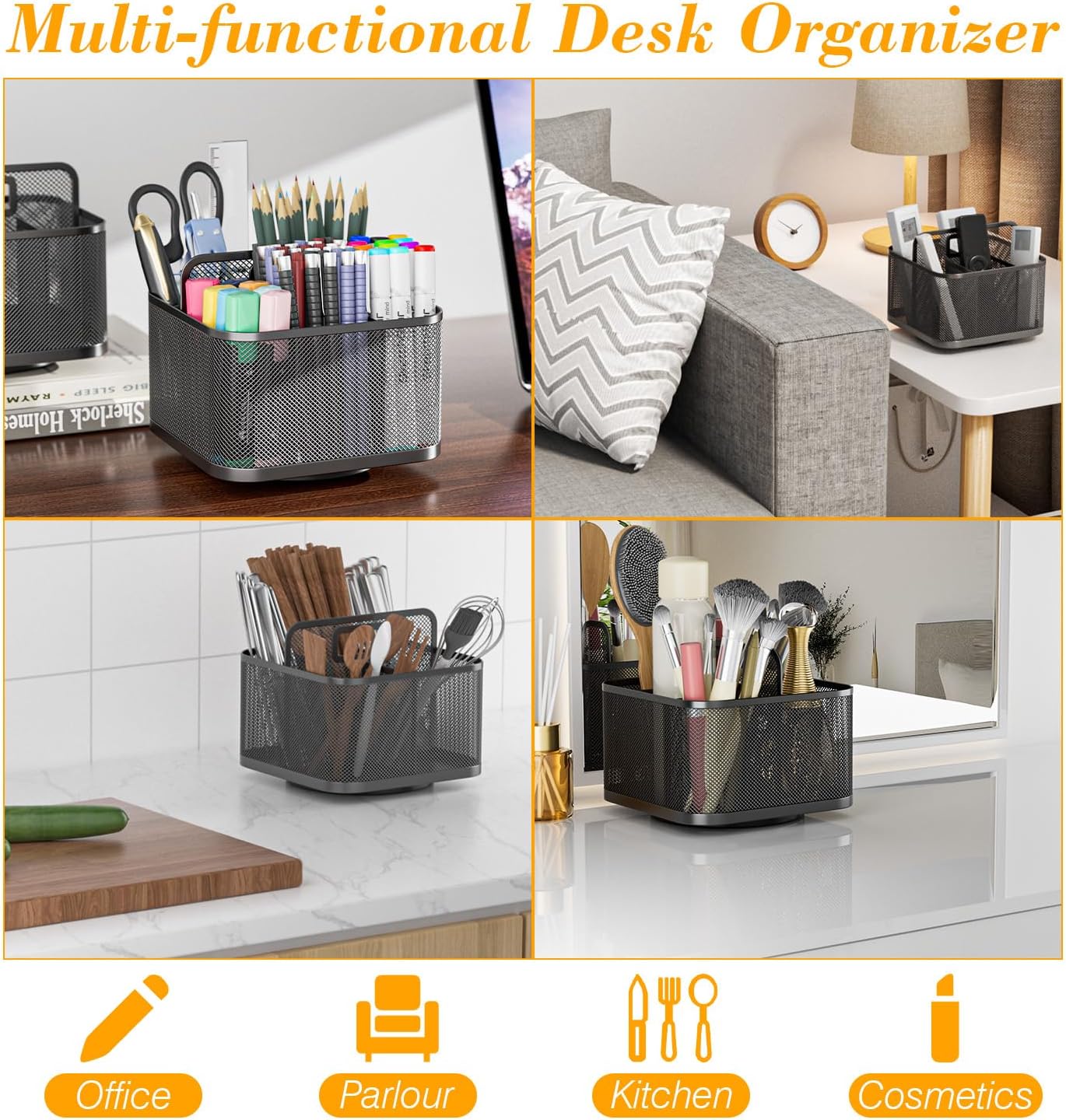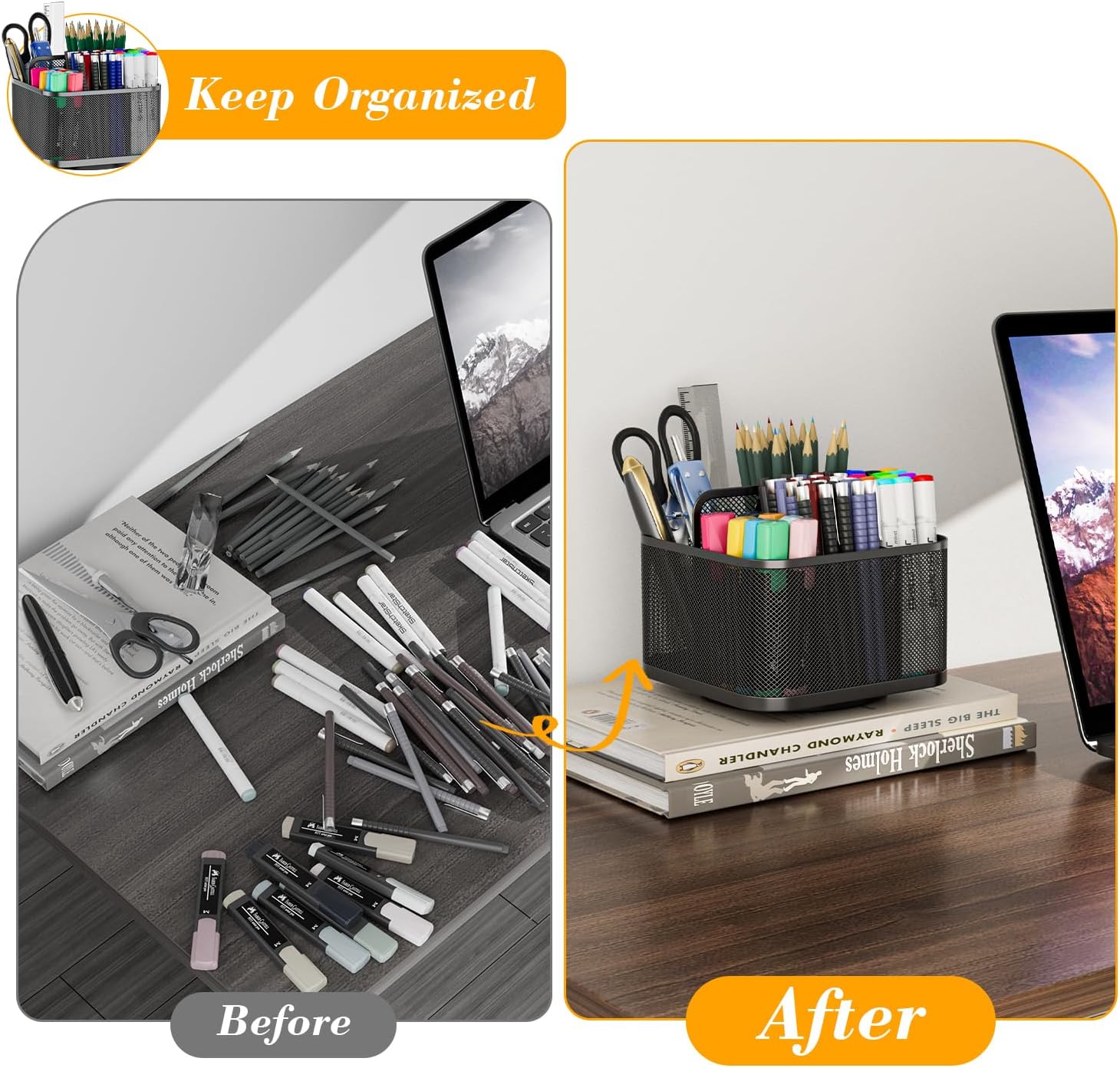 - 360° Rotating Pen Holder-This metal pencil and pen holder combo offers a 360-degree rotation feature, ensuring easy access to your writing tools, and making it even more convenient to find what you need