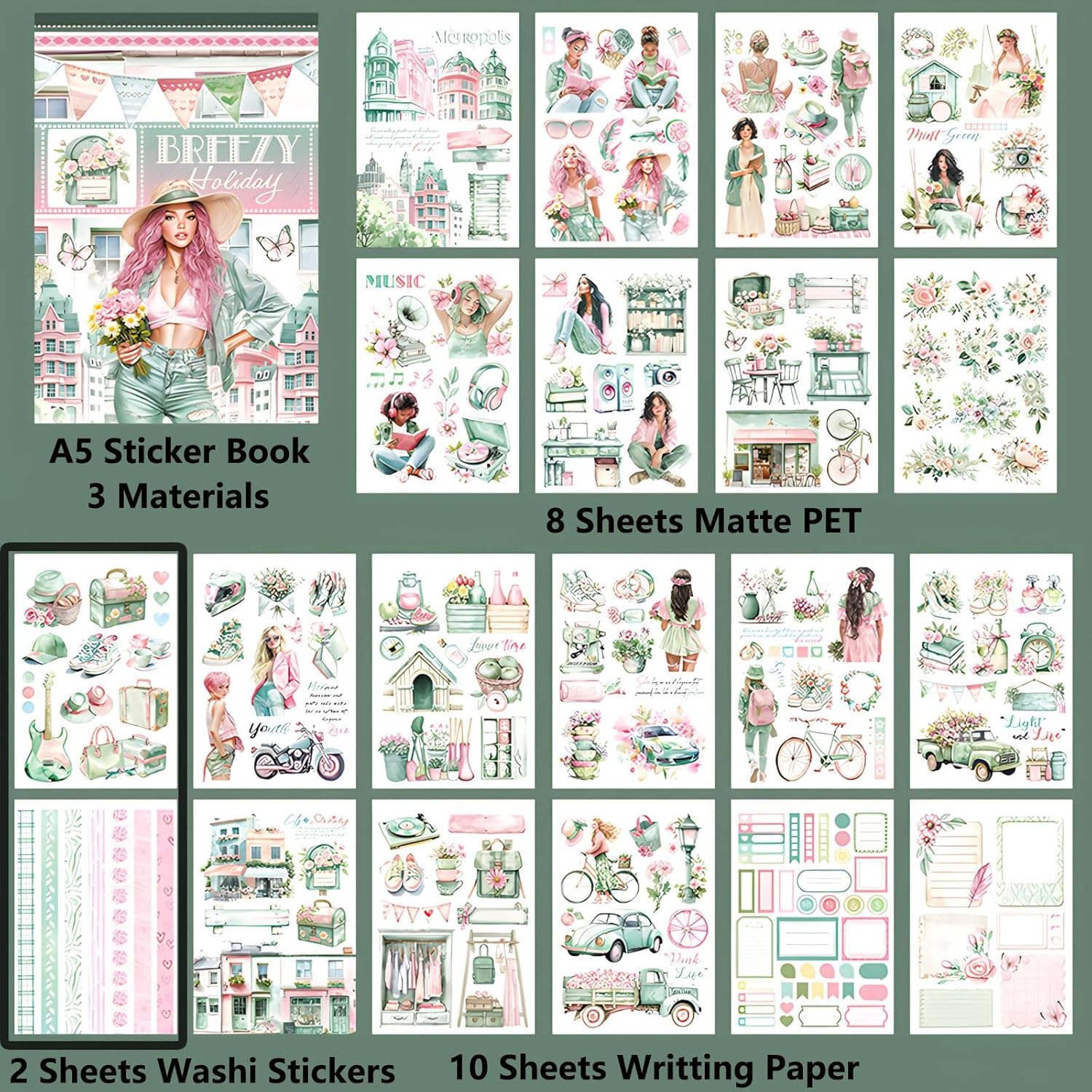 YagCu Journaling Stickers, Breezy Holiday Scrapbook Sticker Book, Junk Journal Supplies, Pre-Cut Aesthetic Scrapbooking for Adults, Decorative Ephemera Bullet Planner Arts Craft Collage
