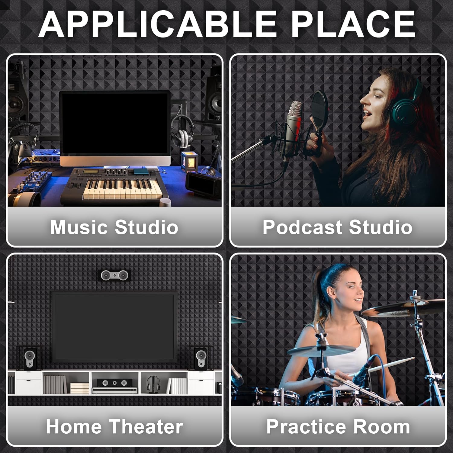 - Wide Use: These sound cancelling foam can improve the acoustics in a room and it's great for spot treating sound on walls in your studio or office - For use in recording studios, control rooms, Offices home studios, home entertainment theaters, Home Offices or any space you needed.