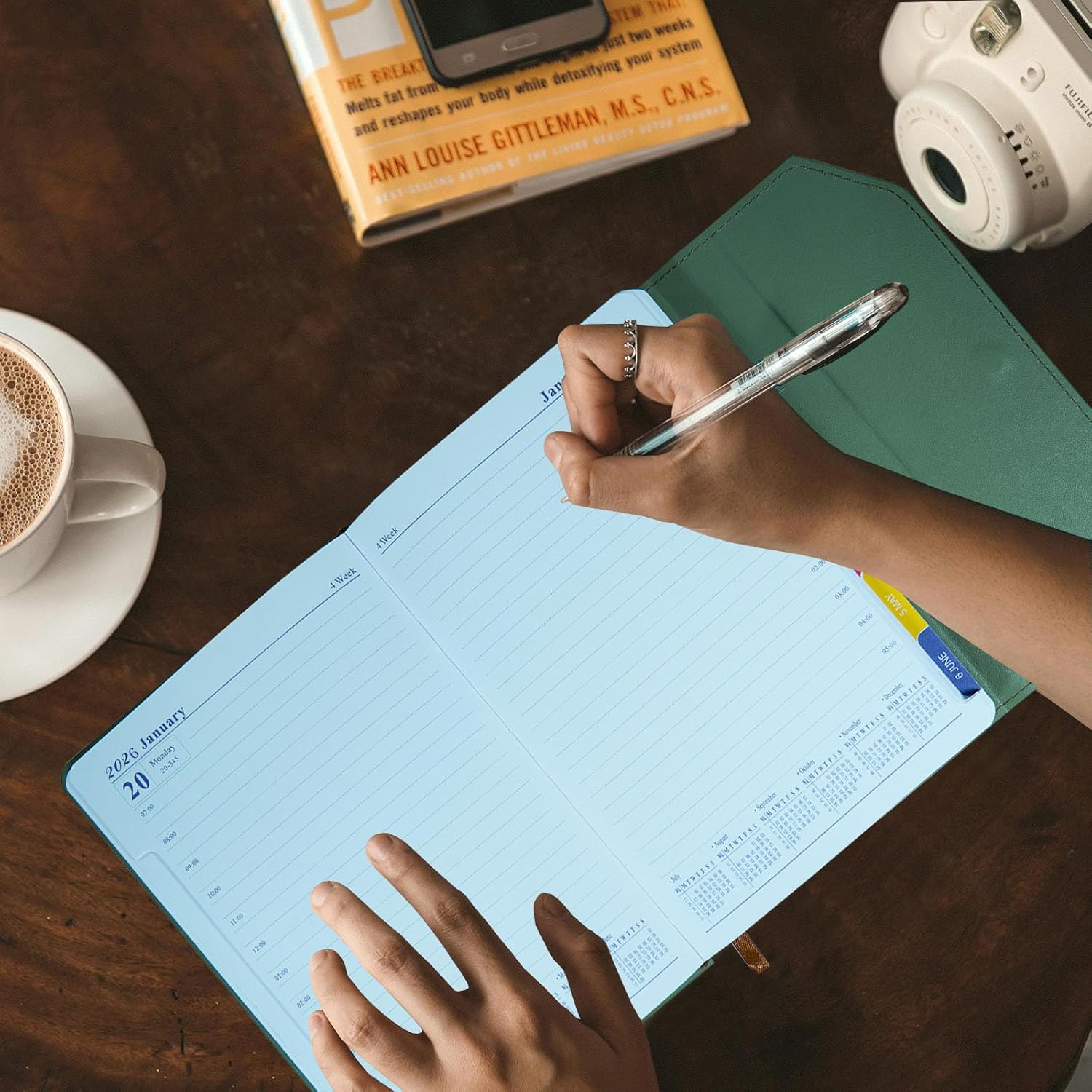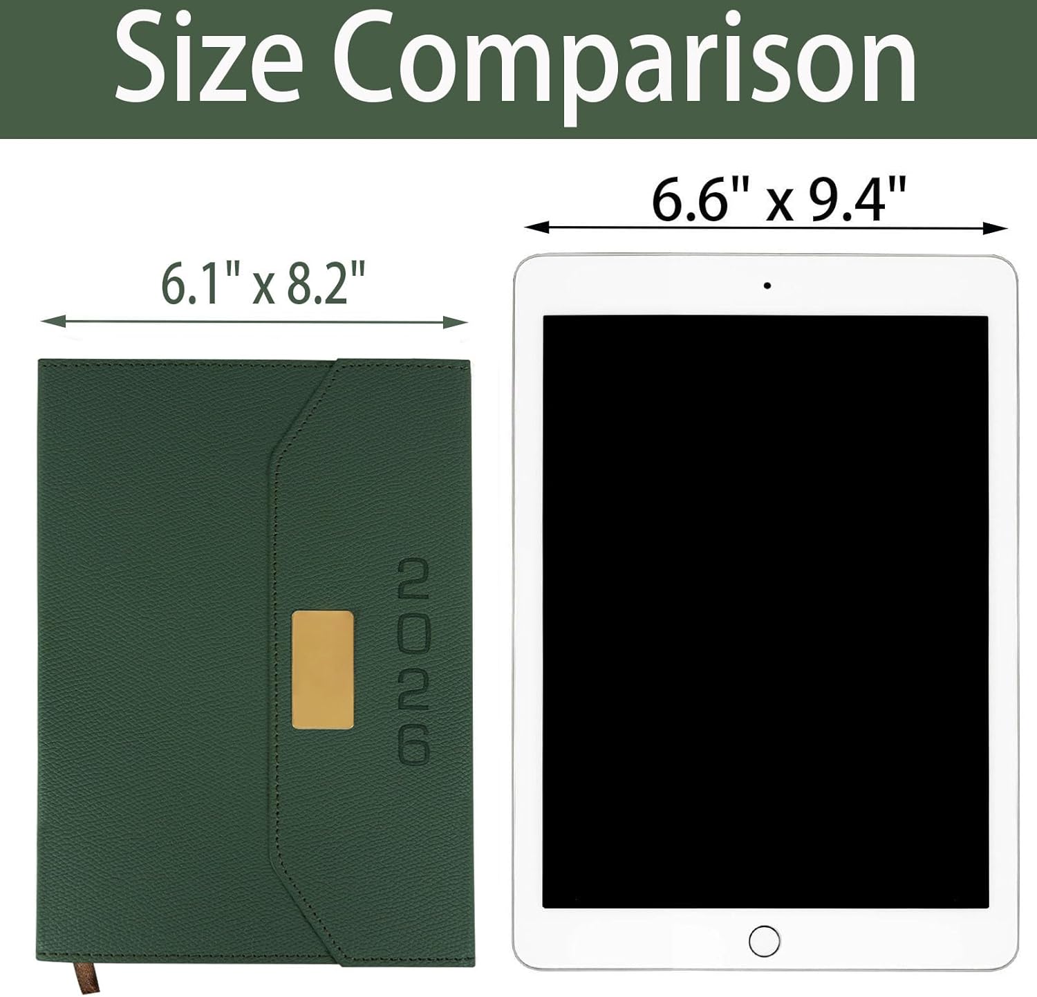 2026 Daily Monthly Planner - Calendar, January - December 2026, 100GSM Thick Paper, Leather Cover, Planner with Hourly Schedule,6.1" x 8.2", Daily Inside Page - Monthly Inside Page, Pen Holder, Bookmarks (Matcha Green)