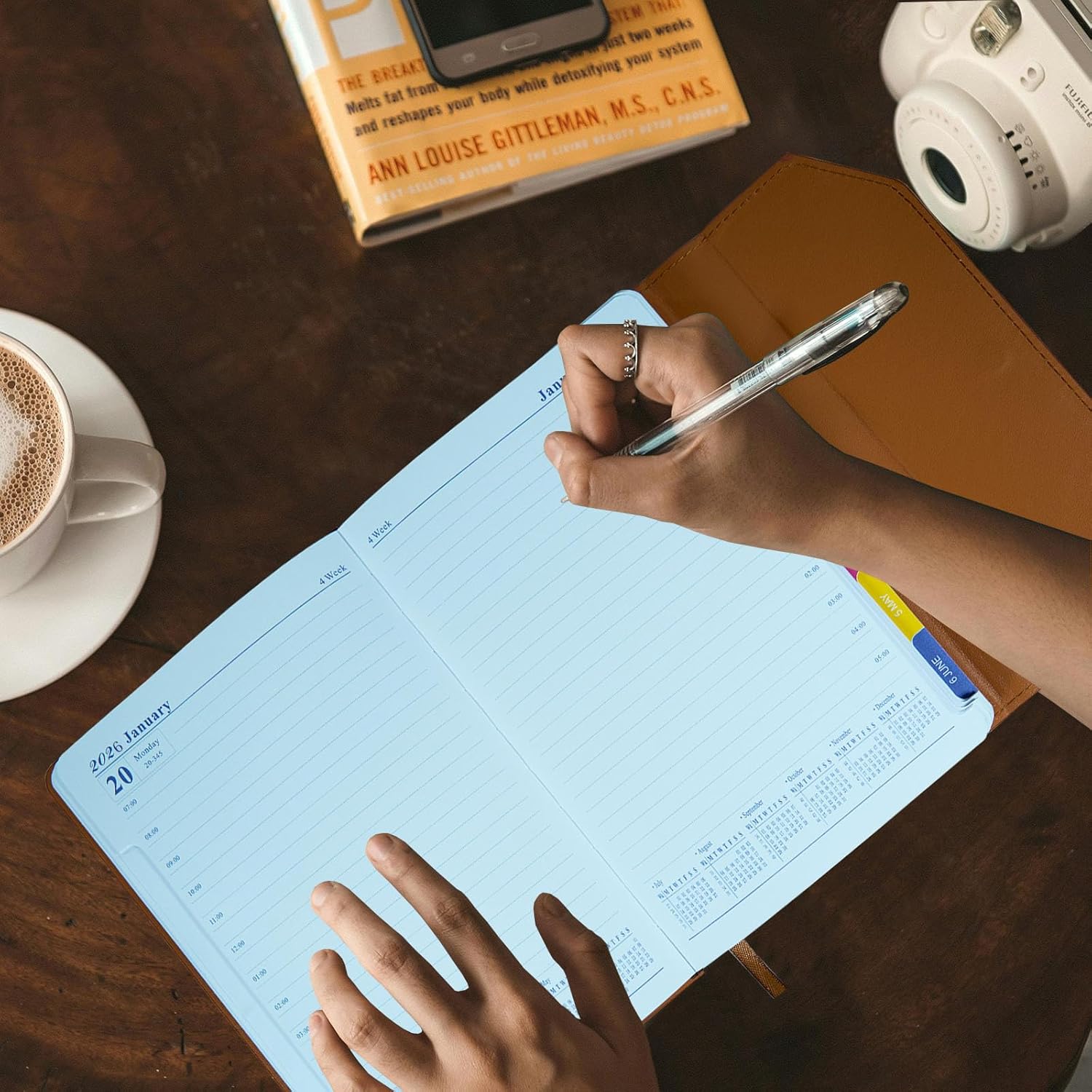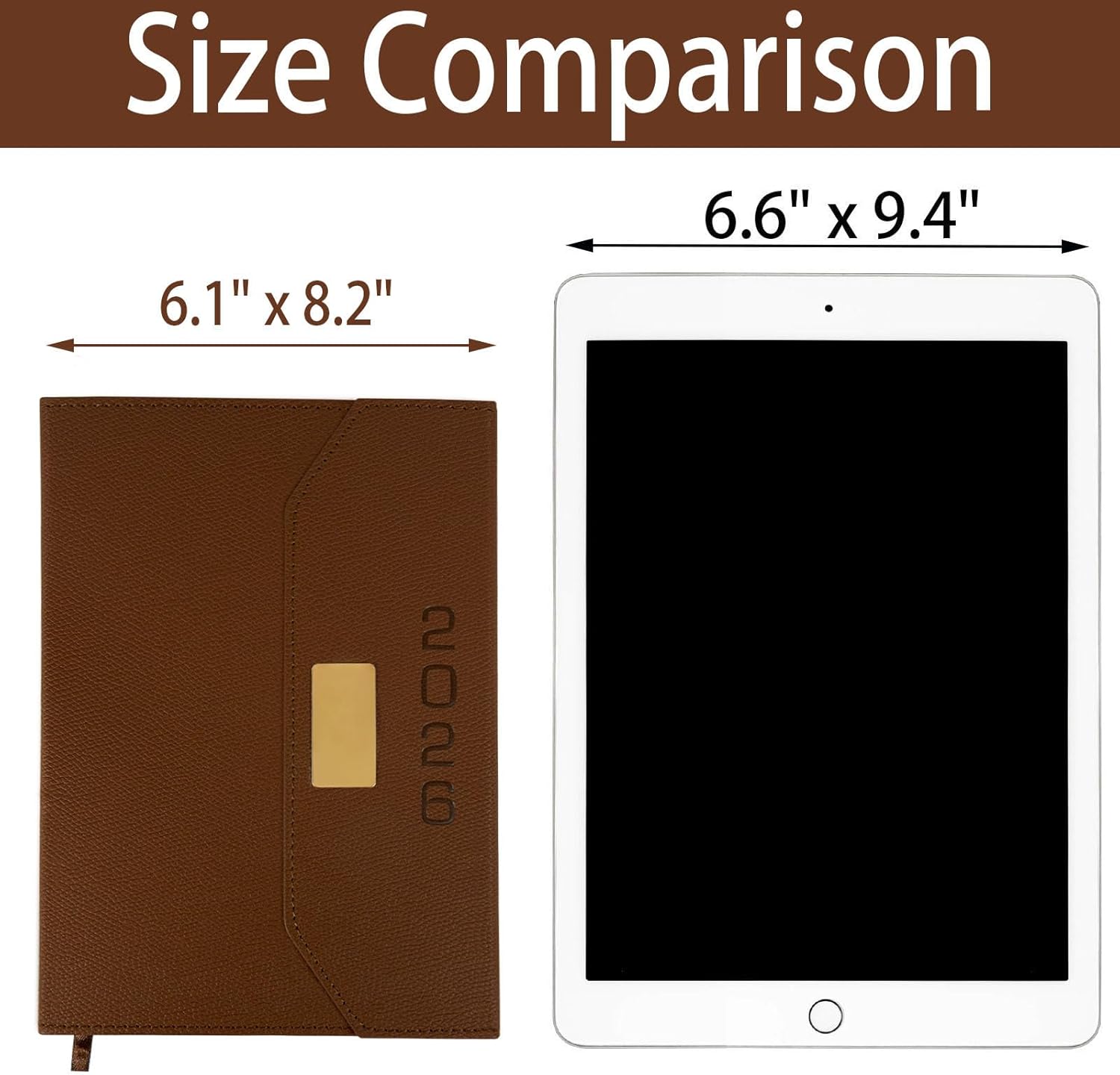 2026 Daily Monthly Planner - Calendar, January - December 2026, 100GSM Thick Paper, Leather Cover, Planner with Hourly Schedule,6.1" x 8.2", Daily Inside Page - Monthly Inside Page, Pen Holder, Bookmarks (Brown)
