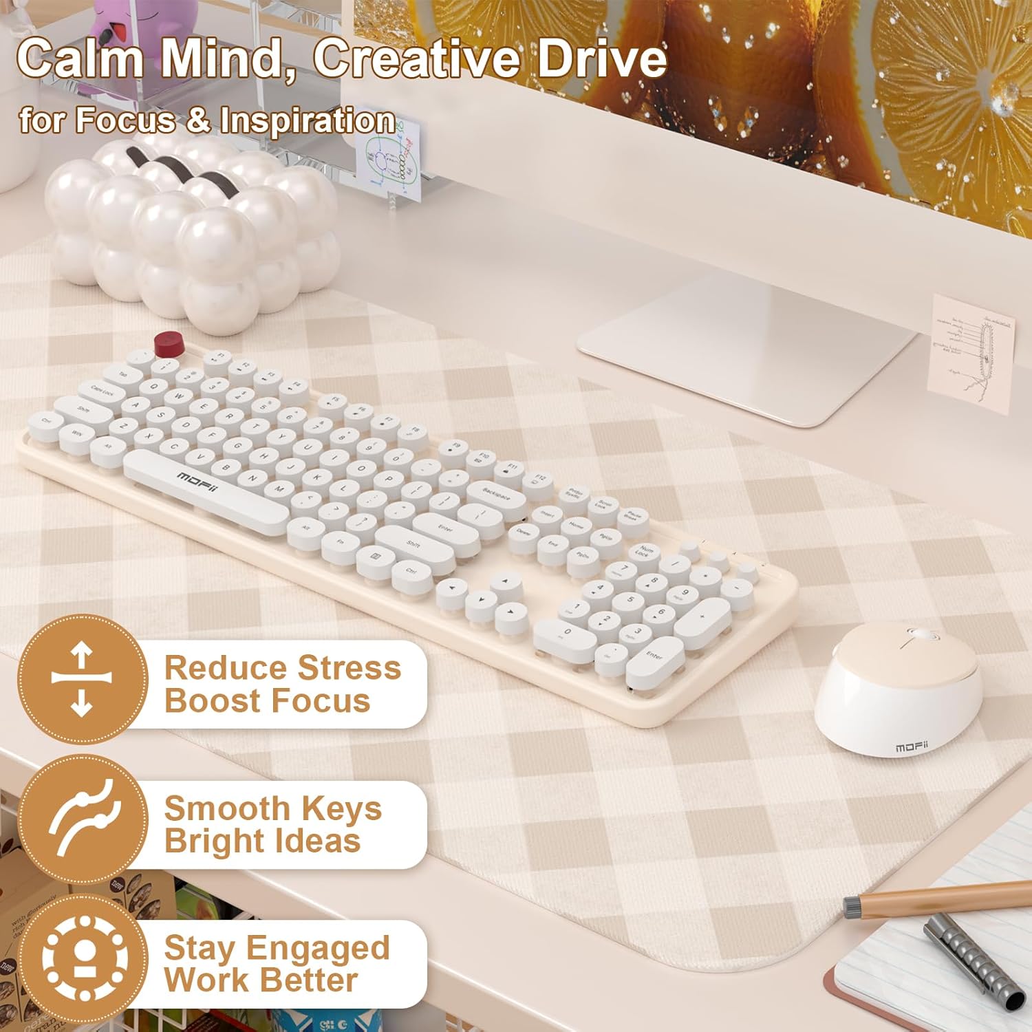 - ?? RETRO WIRELESS KEYBOARD AND MOUSE SET This typewriter keyboard features a vintage design with iconic round keycaps. The wireless keyboard and mouse combo is reliable and ideal for home, office, or college. Free replacement for damaged receiver