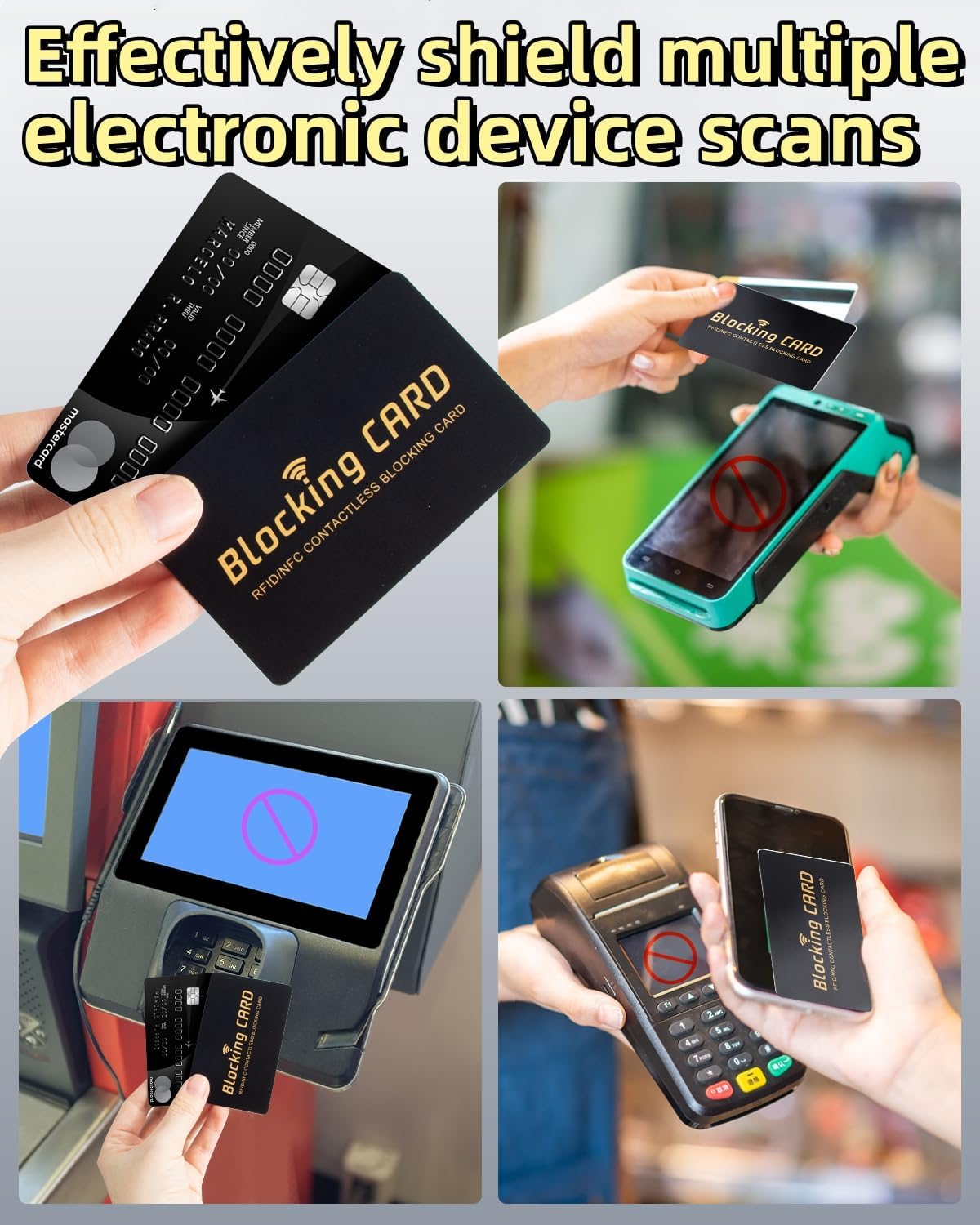 - 1. Complete Wallet Protection: This RFID card blocker safeguards all your contactless smart cards, including credit cards, ATM cards, IDs, passports, and driver’s licenses. Just insert the safe card into your wallet, and it provides full protection against scanning and data theft—no bulky sleeves or special wallets required.Smart Slim Design Perfectly Fits in Wallet/Purse,6 sets of RFID shield card set can also be given as a gift to your family to protect your whole family's wallet!.