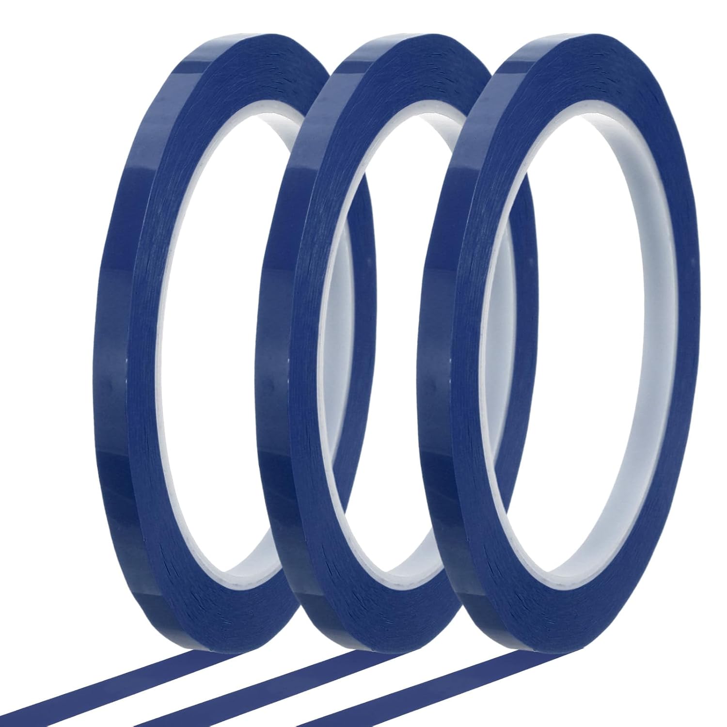 MECCANIXITY Whiteboard Tape 1/4" x 72 Yard Pinstripe Graphic Chart Line Grid Marking Tapes for Classroom Office Dry Erase Board Art, Blue, Pack of 3