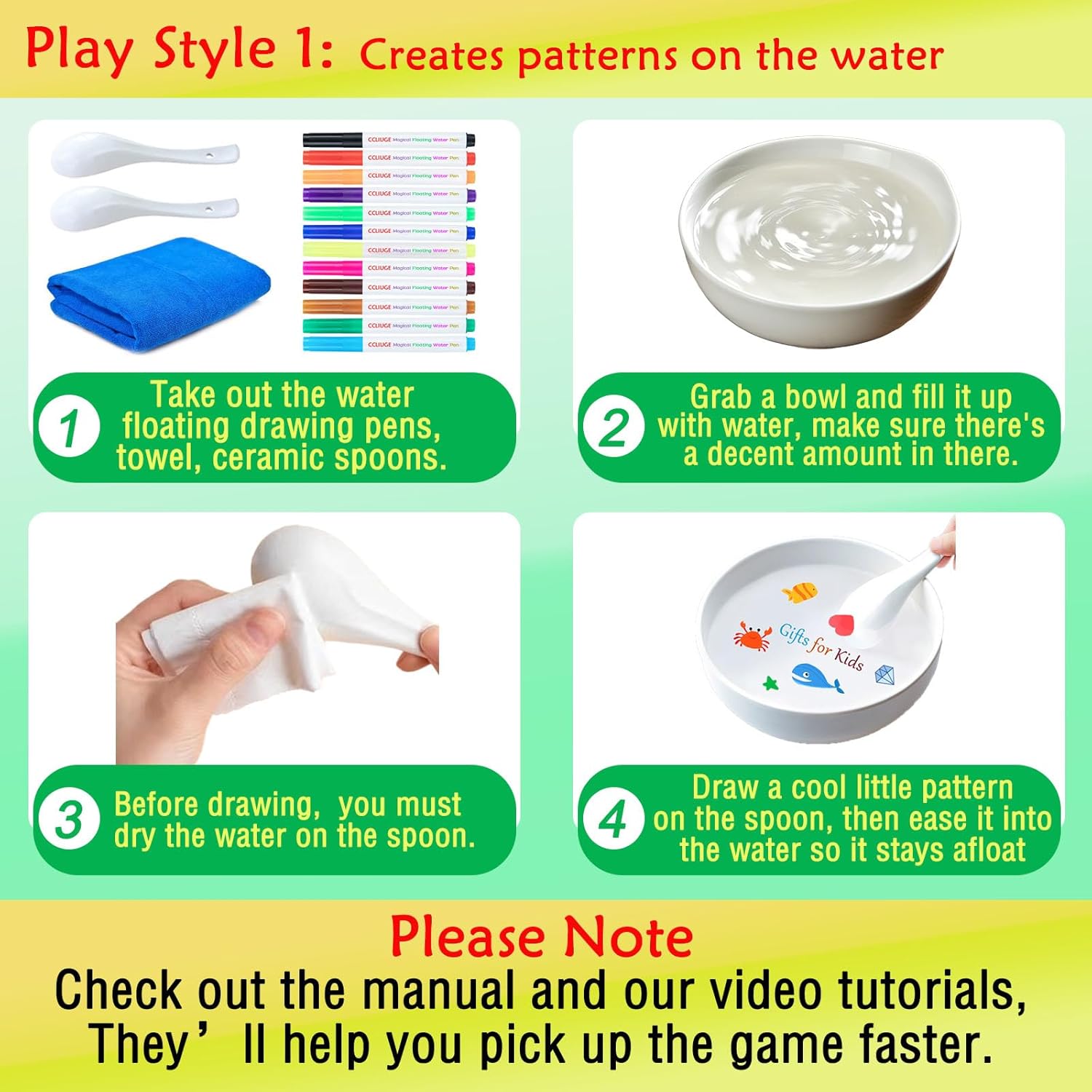 - šNotice: Be sure to watch our video before using it. It can help you quickly understand the usage of the float ink water paint pen for children, how to make tattoos pictures for kiddie. If you experience any issues with your product, please contact us.