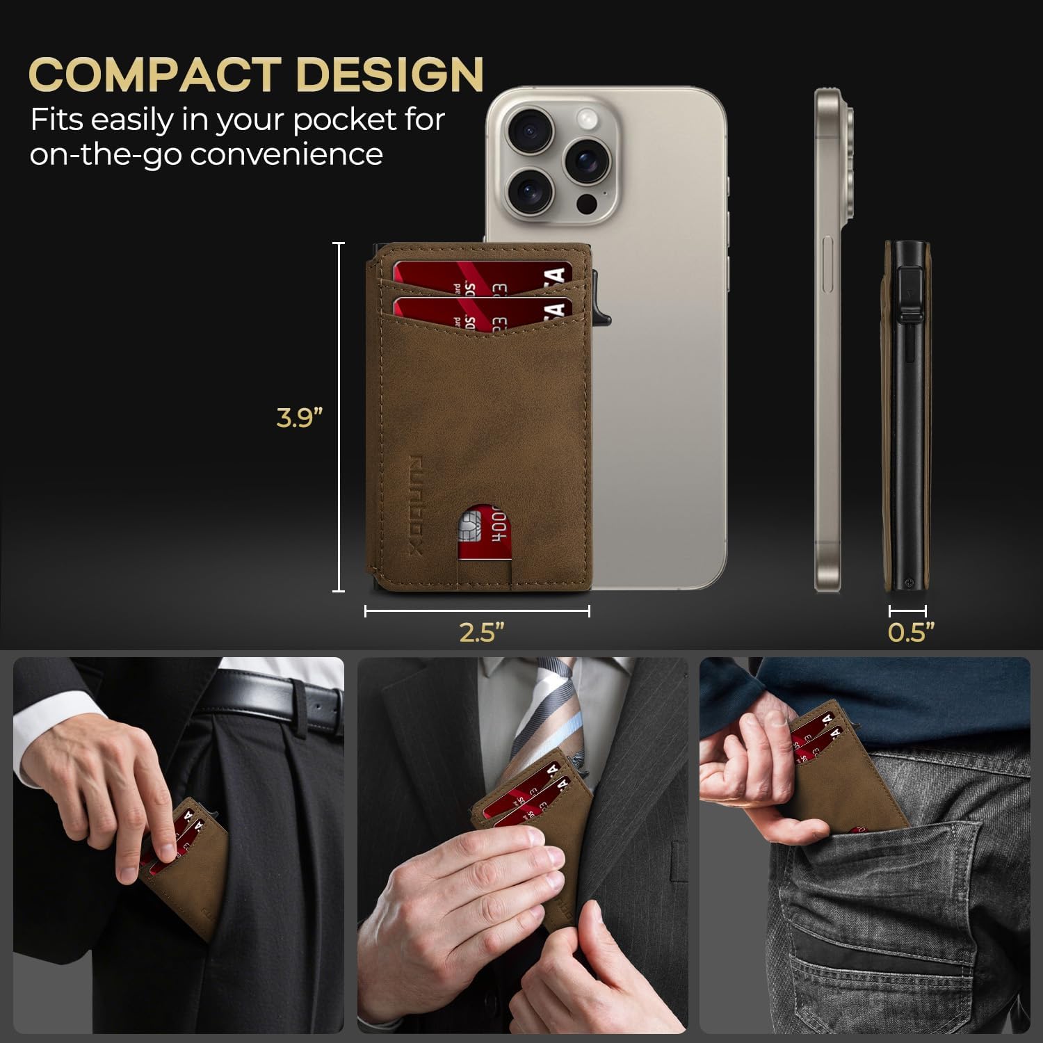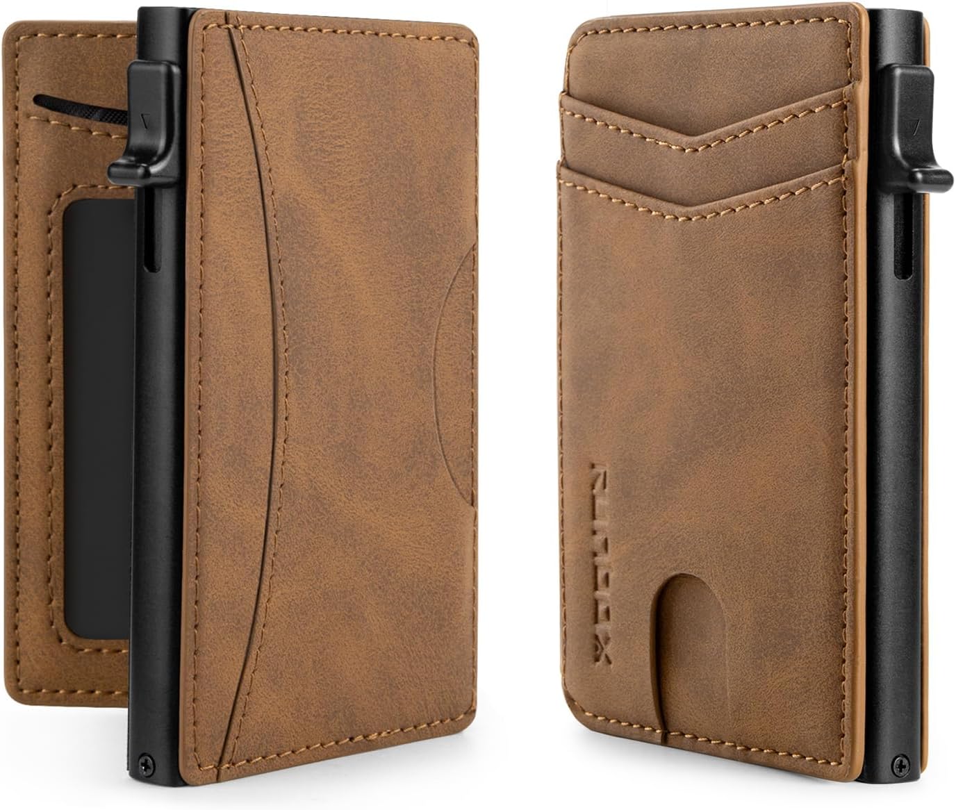 Slim Card Wallet for Men with ID Window – Minimalist RFID Wallet, Pop-Up Function, Ultra Thin Design, Metal Business Card Case Holds 8+ Cards, Gifts for Men, Men's Accessories