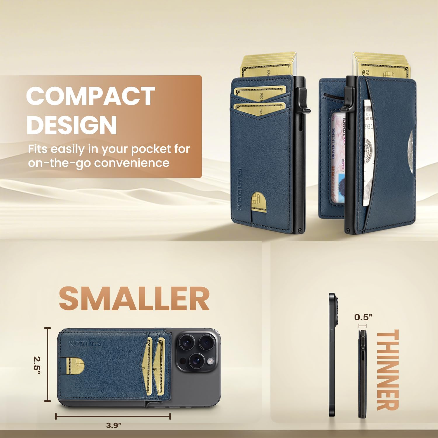 Slim Card Wallet for Men with ID Window – Minimalist RFID Wallet, Pop-Up Function, Ultra Thin Design, Metal Business Card Case Holds 8+ Cards, Gifts for Men, Men's Accessories